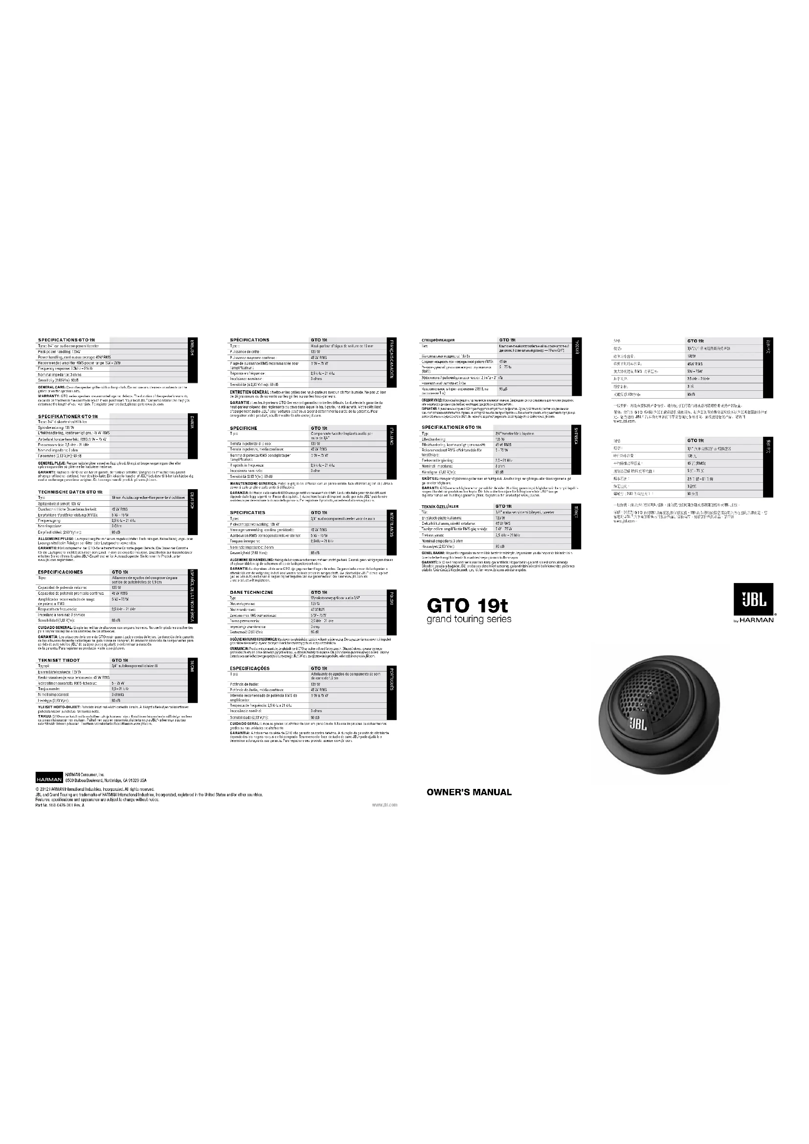 Retrouvez gratuitement la notice de l'appareil GTO19T JBL au format PDF.