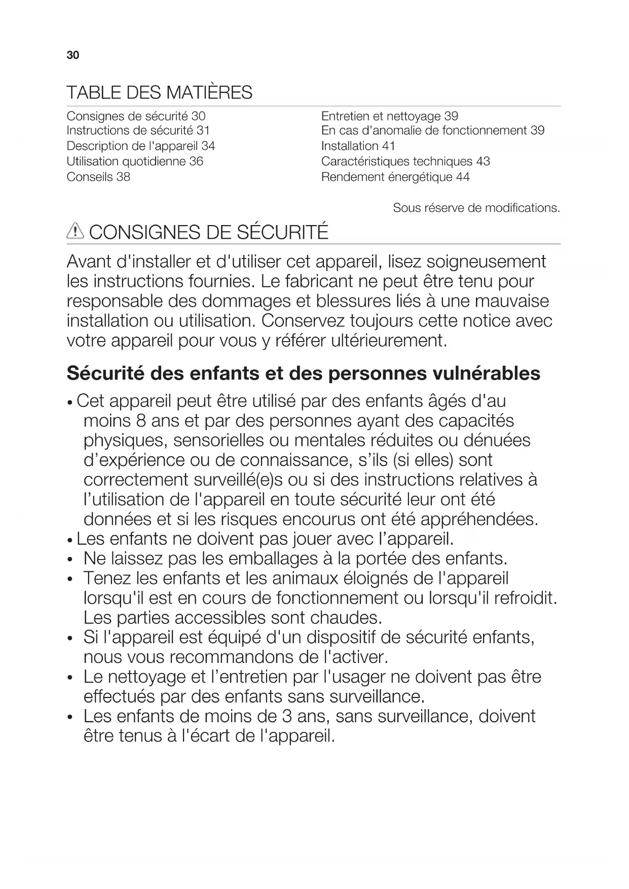 - Si l'appareil est équipé d'un dispositif de sécurité enfants, nous vous recommendons de l'activer.