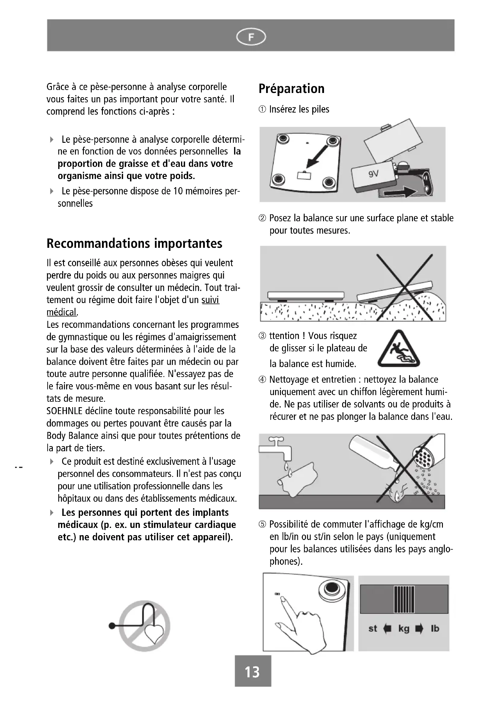 SOEHNLE decline toute responsabilité pour les dommages ou pertes pouvant etre causés par la Body Balance ainsi que pour toutes prétentions de la part de tiers.