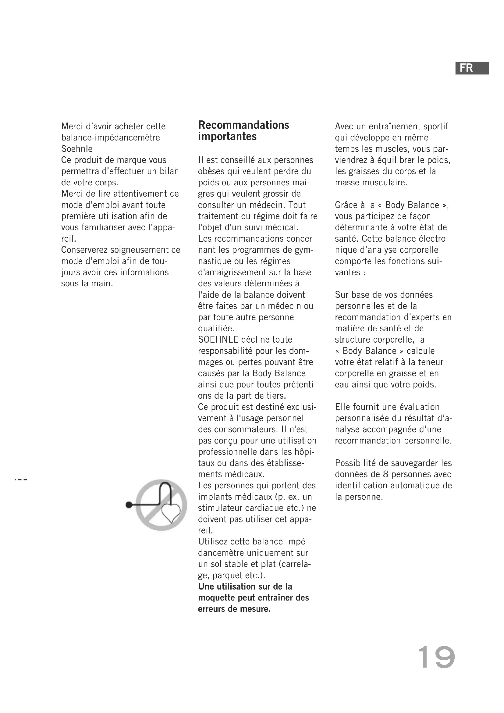 SOEHNLE decline toute responsabilité pour les dommages ou pertes pouvant etre causés par la Body Balance ainsi que pour toutes prétentions de la part de tiers.