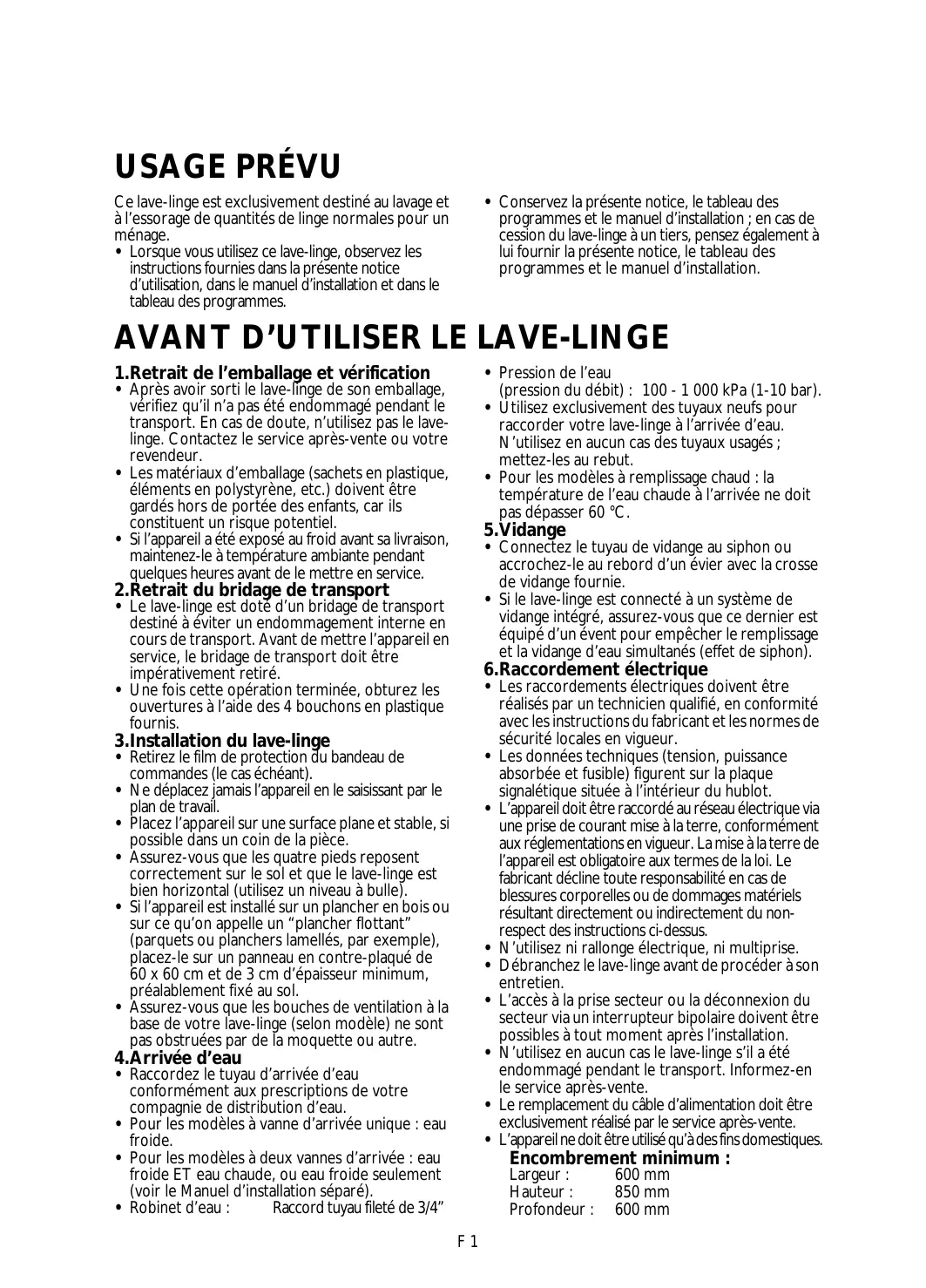 AVANT D’UTILISER LE LAVE-LINGE