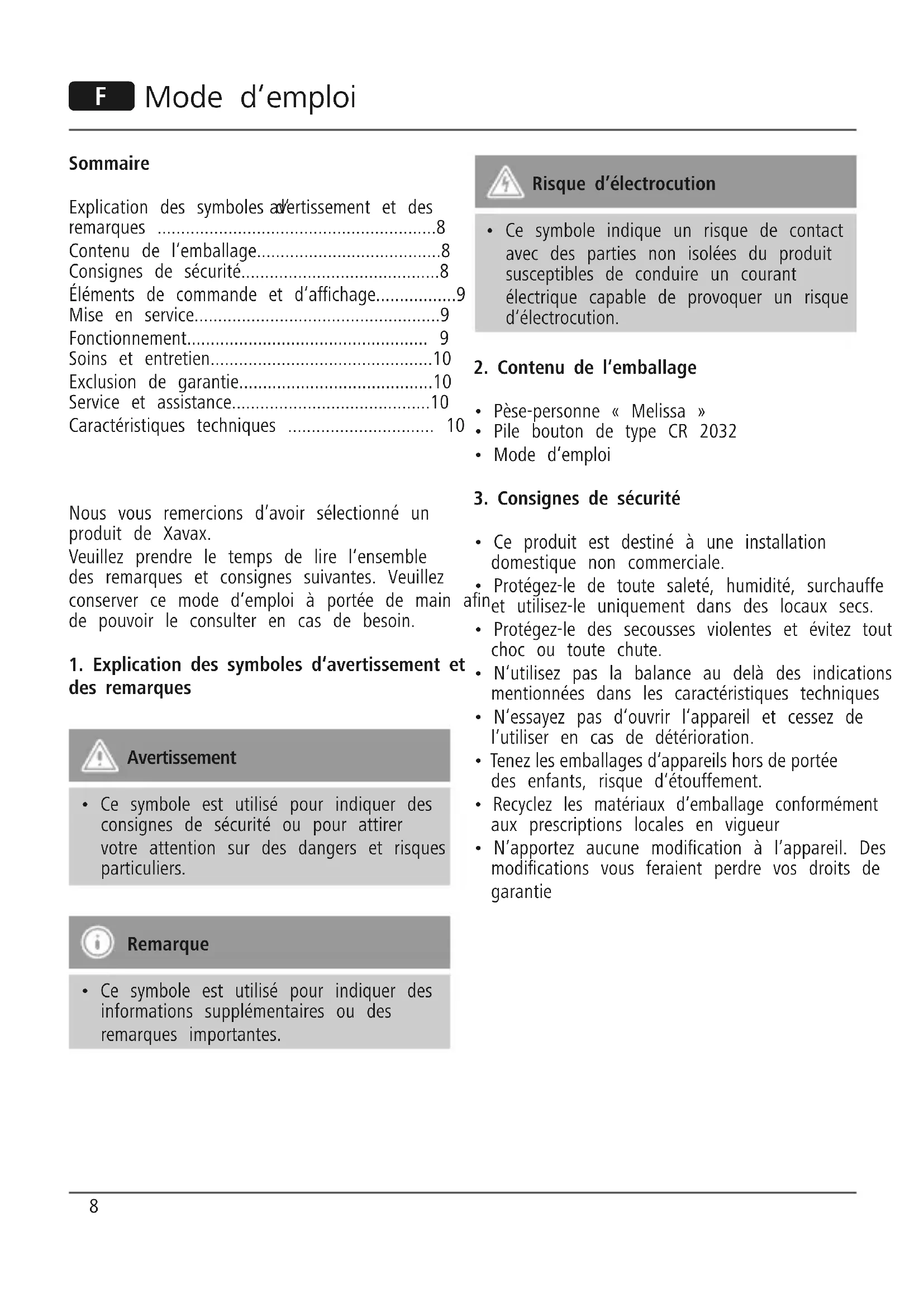 Melissa - Balance Xavax - Notice d'utilisation et mode d'emploi gratuit