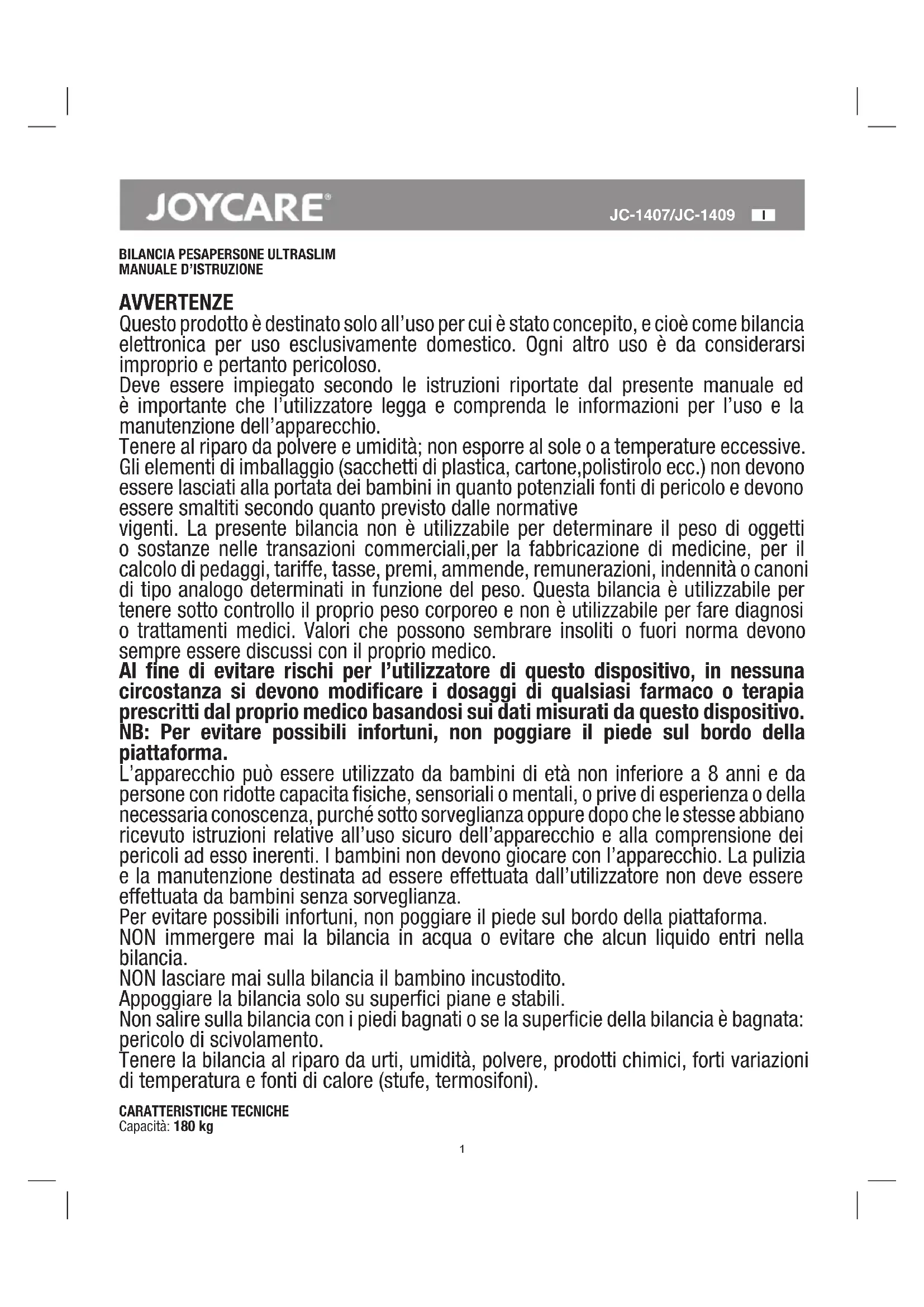 JC1407 - Balance Joycare - Notice d'utilisation et mode d'emploi gratuit