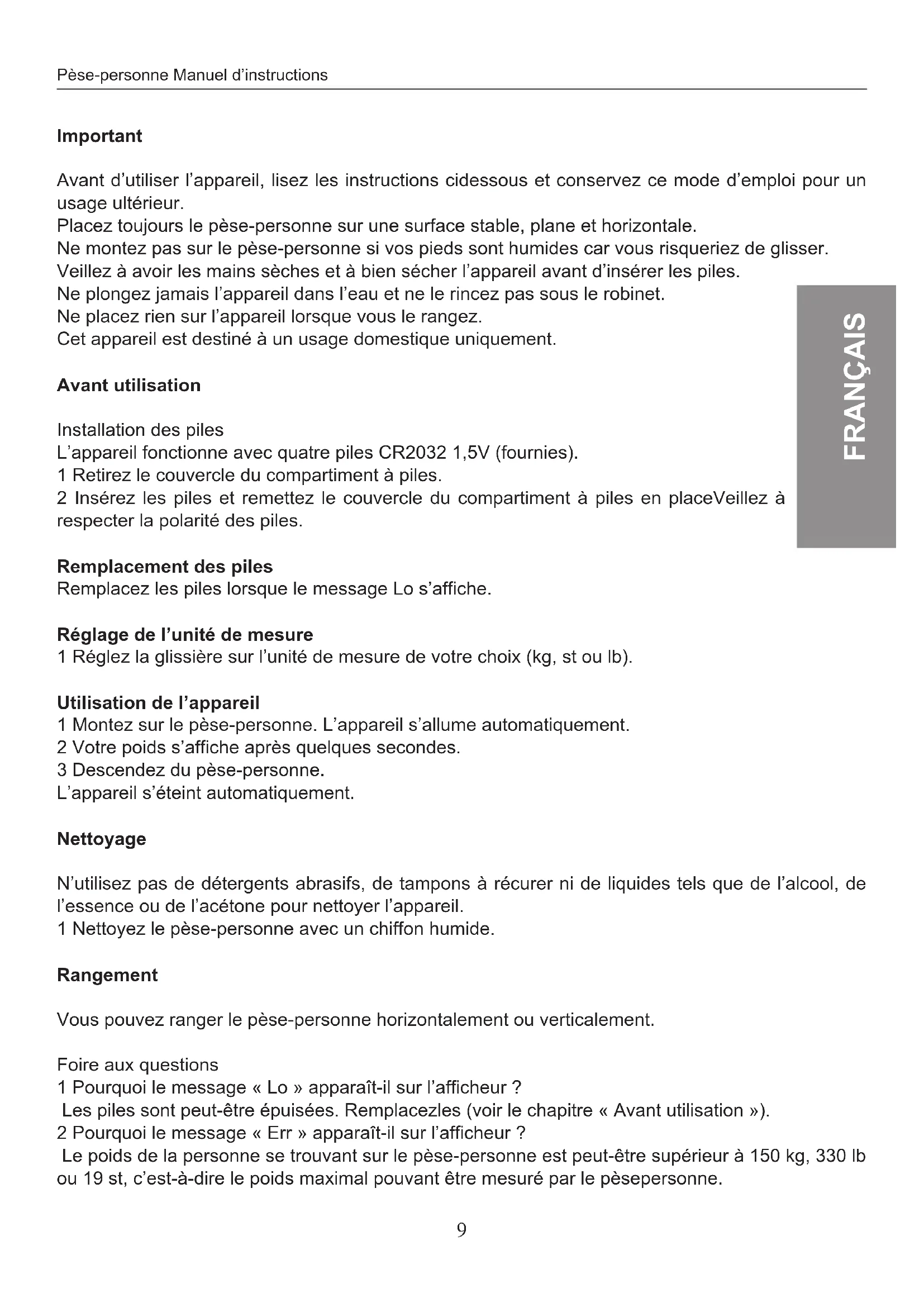 Placez toujours le pese-personne sur une surface stable, plane et horizontale.