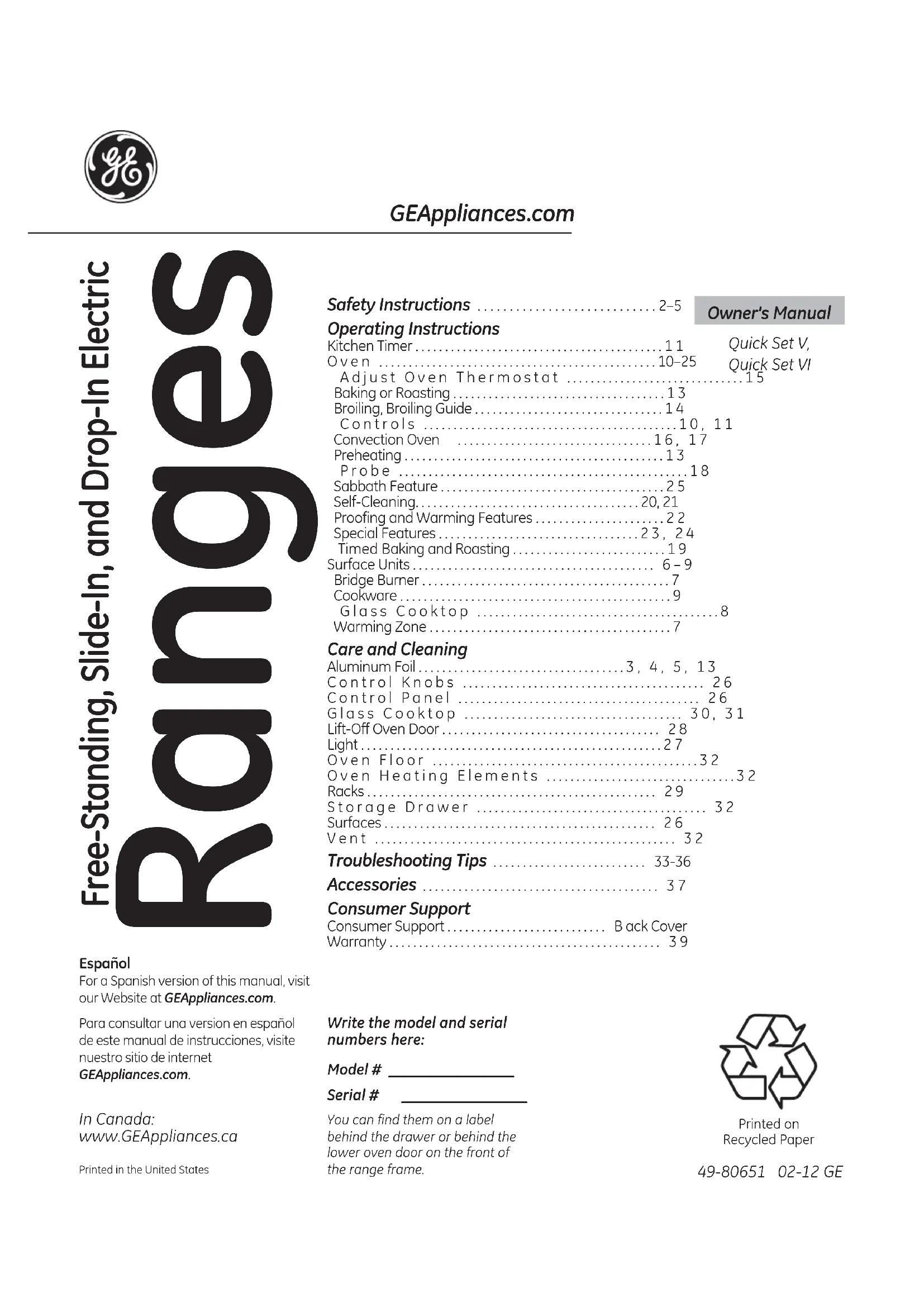 JD630SFSS - Cuisinière GE - Notice d'utilisation et mode d'emploi gratuit