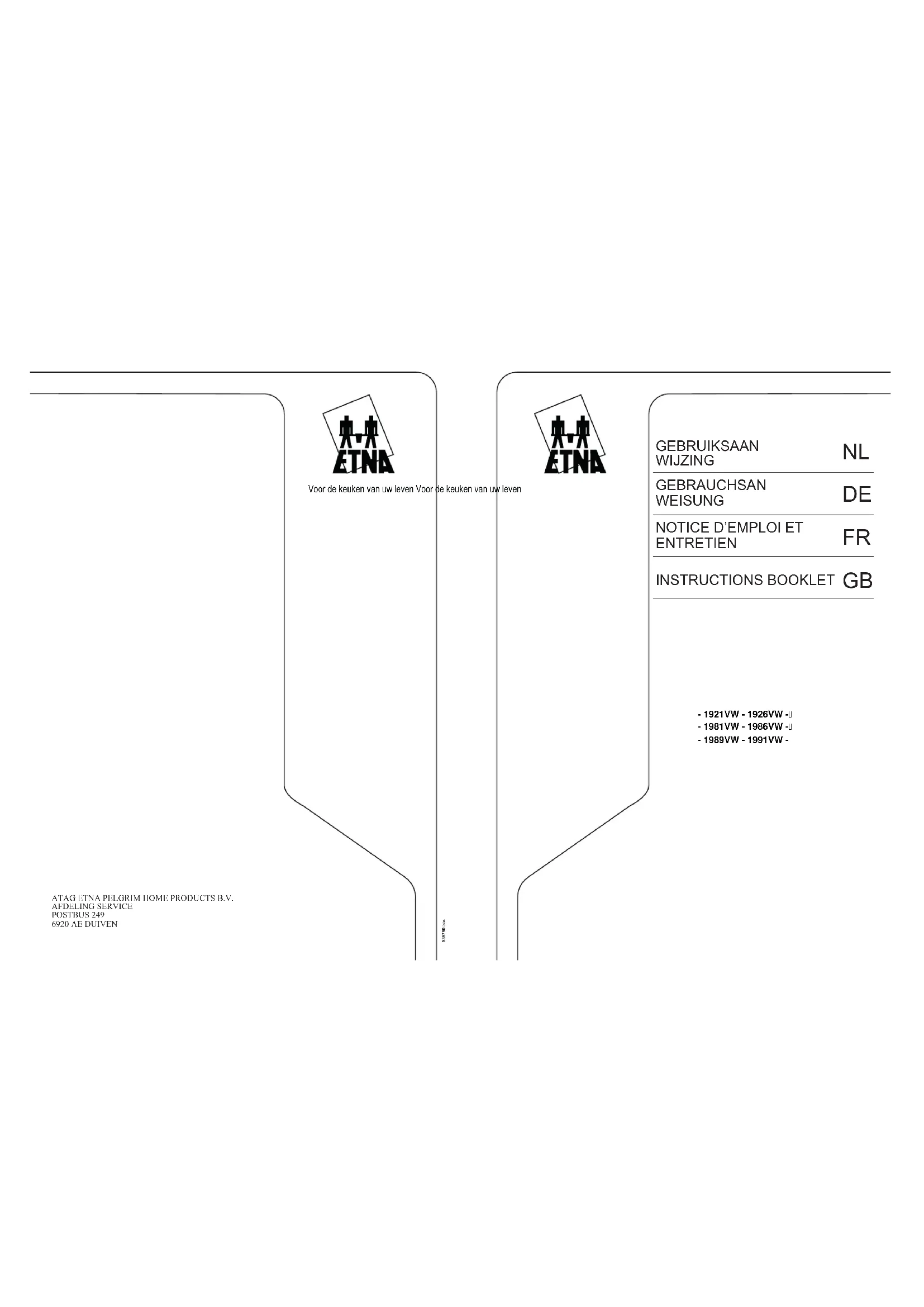 Retrouvez gratuitement la notice de l'appareil 1926VW ETNA au format PDF.