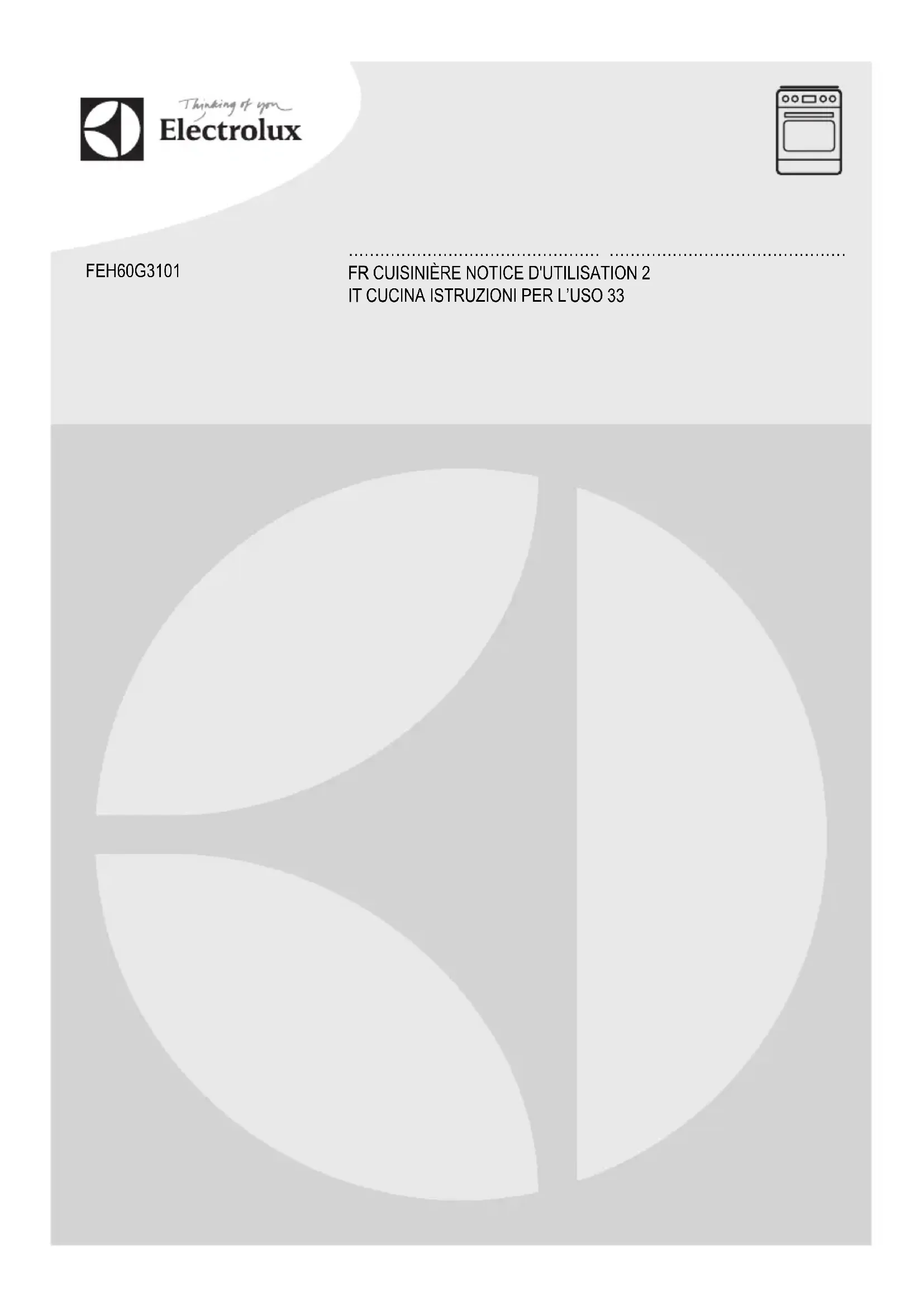 FEH60G3102 - Cuisinière ELECTROLUX - Notice d'utilisation et mode d'emploi gratuit