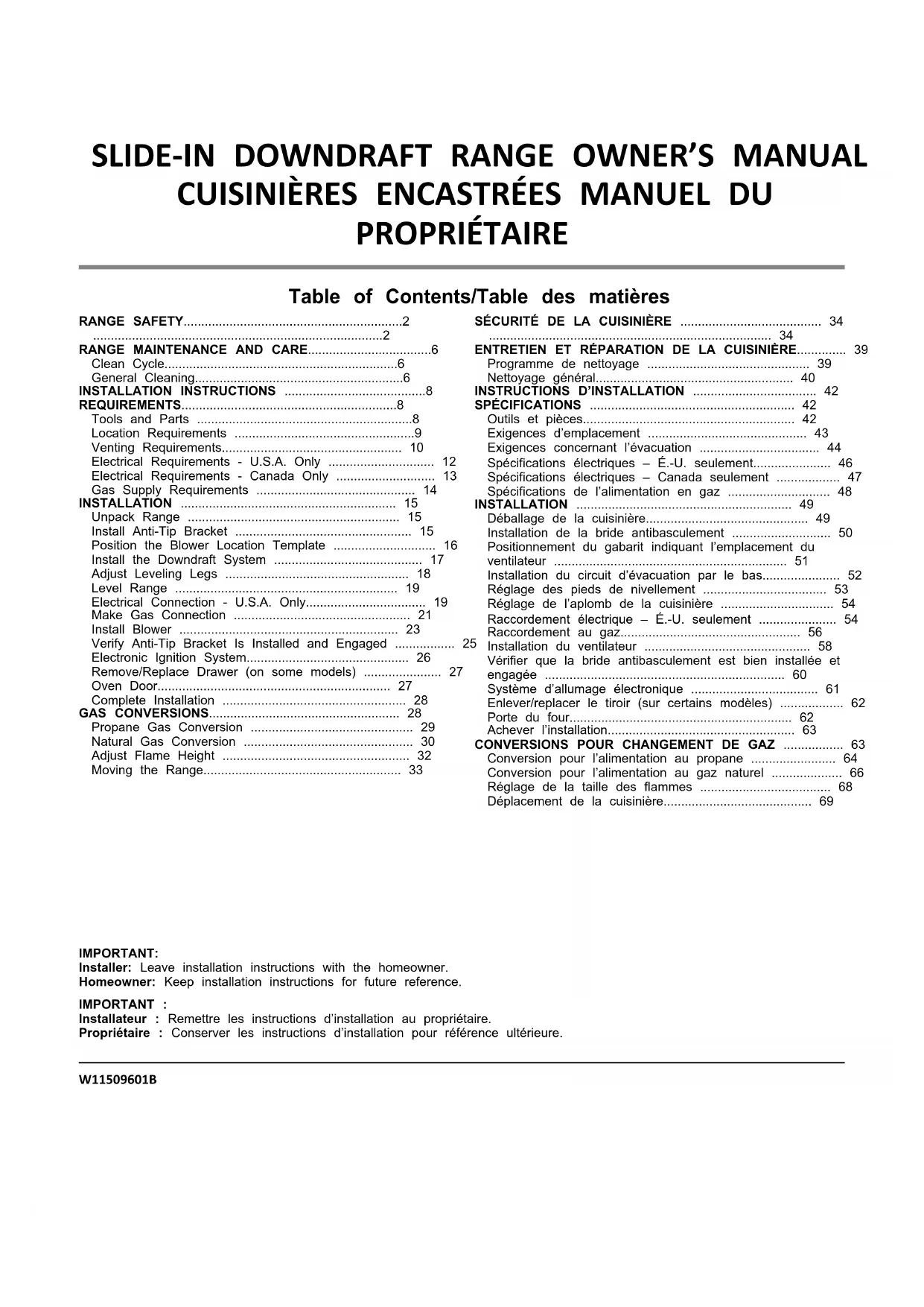 W11509601B IMPORTANT: Installer: Leave installation instructions with the homeowner. Homeowner: Keep installation instructions for future reference. IMPORTANT : Installateur : Remettre les instructions d’installation au propriétaire. Propriétaire : Conserver les instructions d’installation pour référence ultérieure.