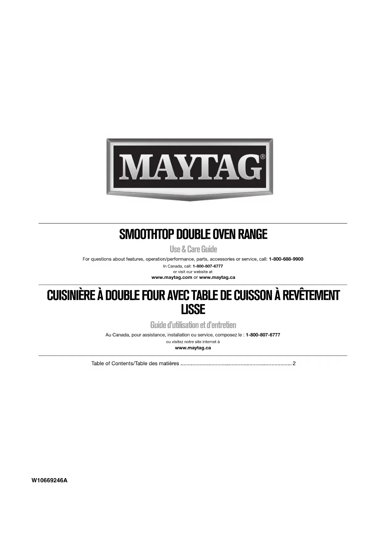 originaux ont été enlevés, modifiés ou ne peuvent pas être facilement identifiés. Le coût d’une réparation ou d’un remplacement dans le cadre de ces circonstances exclues est à la charge du client. http://www.maytag.ca51 1/14 CLAUSE D'EXONÉRATION DE RESPONSABILITÉ AU TITRE DES GARANTIES IMPLICITES LES GARANTIES IMPLICITES, Y COMPRIS LES GARANTIES APPLICABLES DE QUALITÉ MARCHANDE OU D'APTITUDE À UN USAGE PARTICULIER, SONT LIMITÉES À UN AN OU À LA PLUS COURTE PÉRIODE AUTORISÉE PAR LA LOI. Certains États et provinces ne permettent pas de limitation sur la durée des garanties implicites de qualité marchande ou d'aptitude à un usage particulier, de sorte que la limitation ci-dessus peut ne pas être applicable dans votre cas. Cette garantie vous confère des droits juridiques spécifiques et vous pouvez également jouir d’autres droits qui peuvent varier d’une juridiction à l'autre. EXONÉRATION DE RESPONSABILITÉ DANS LES DOMAINES NON COUVERTS PAR LA GARANTIE Maytag décline toute responsabilité au titre de la qualité, de la durabilité ou en cas de dépannage ou de réparation nécessaire sur ce gros appareil ménager autre que les responsabilités énoncées dans la présente garantie. Si vous souhaitez une garantie plus étendue ou plus complète que la garantie limitée fournie avec ce gros appareil ménager, adressez-vous à Maytag ou à votre détaillant pour obtenir les modalités d'achat d'une garantie étendue. LIMITATION DES RECOURS; EXCLUSION DES DOMMAGES FORTUITS OU INDIRECTS LE SEUL ET EXCLUSIF RECOURS DU CLIENT DANS LE CADRE DE LA PRÉSENTE GARANTIE LIMITÉE CONSISTE EN LA RÉPARATION PRÉVUE PAR LA PRÉSENTE. MAYTAG N’ASSUME AUCUNE RESPONSABILITÉ POUR LES DOMMAGES FORTUITS OU INDIRECTS. Certains États et certaines provinces ne permettent pas l’exclusion ou la limitation des dommages fortuits ou indirects de sorte que ces limitations et exclusions peuvent ne pas être applicables dans votre cas. Cette garantie vous confère des droits juridiques spécifiques et vous pouvez également jouir d’autres droits qui peuvent varier d’une juridiction à l'autre.W10669246A