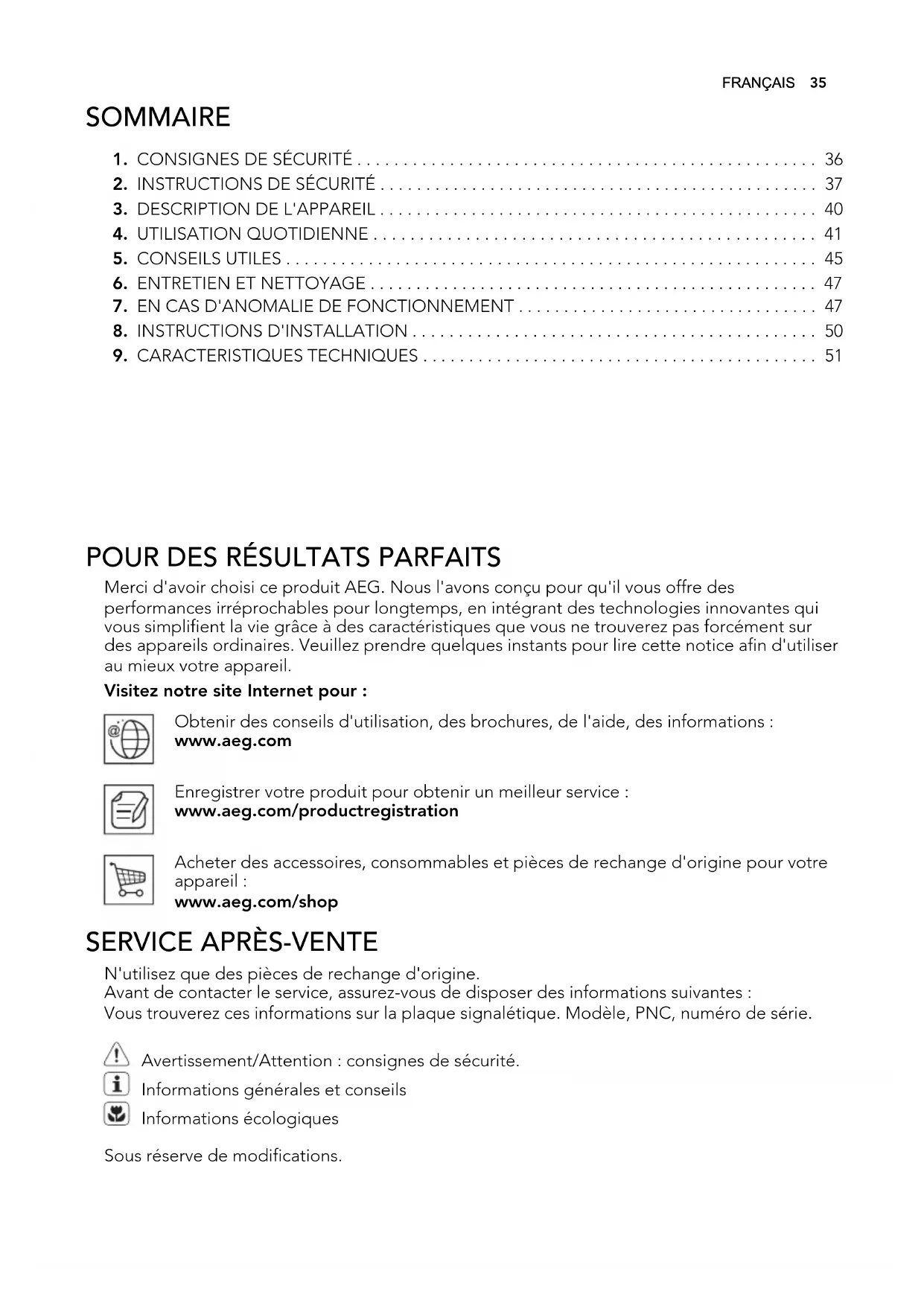 Obtenir des conseils d'utilisation, des brochures, de l'aide, des informations : www.aeg.com