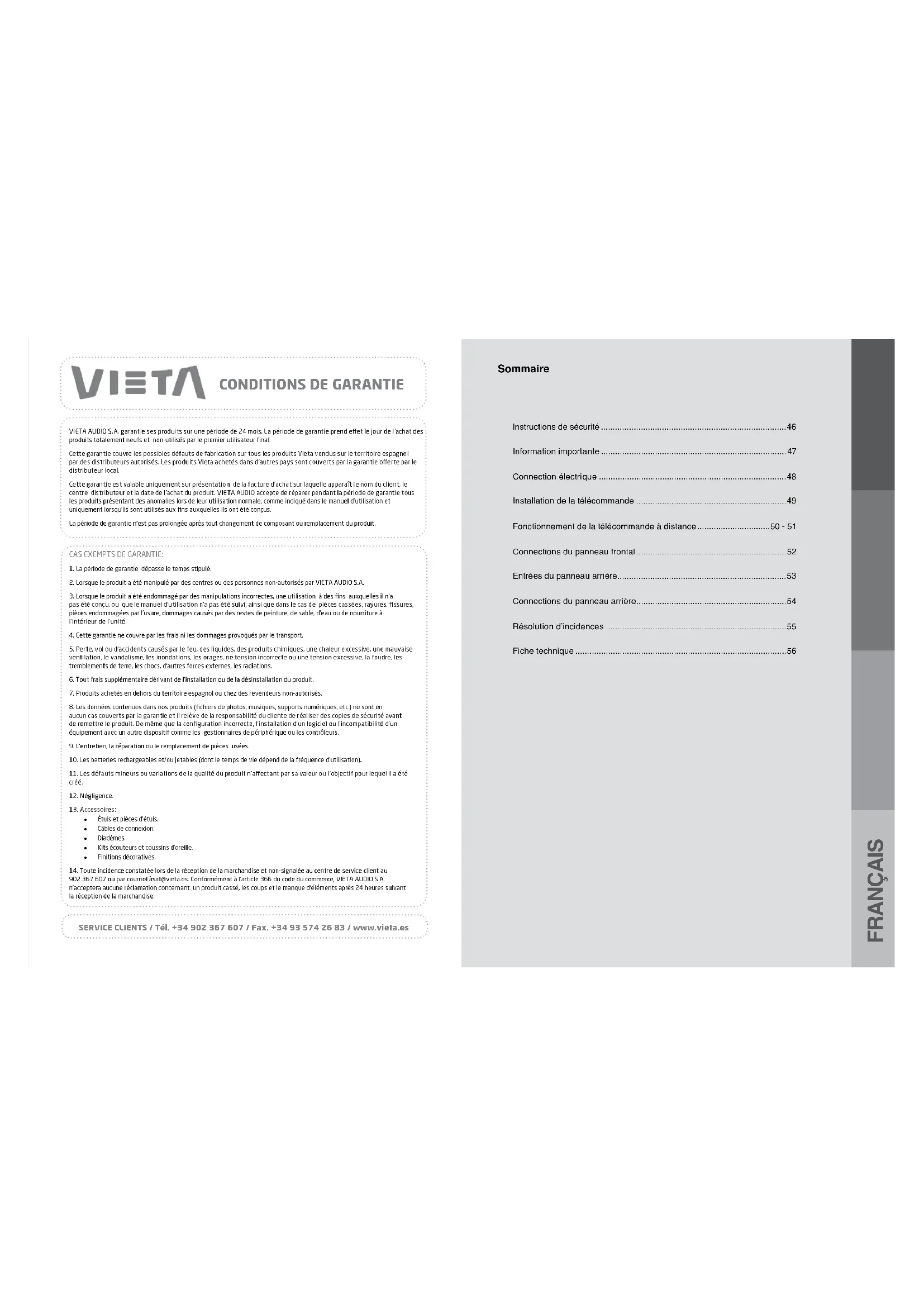 - Toune incoiante sateds la reception de la manchandise et non signale au centre de service client au 902-367-507 ou par courail basatveiaes. Conformement à l'article 366 du code du commerce, VIETA AUDIO S.A. nacoptee eucure réclamation concernant un produit cassé, les coup et le manque d'élements après 24 heures suivant la reception de la manchandise.
