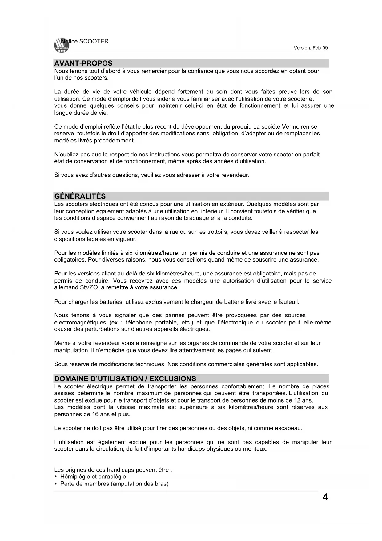 - Perte de membres (amputation des bras)Notice SCOOTER Version: Feb-09