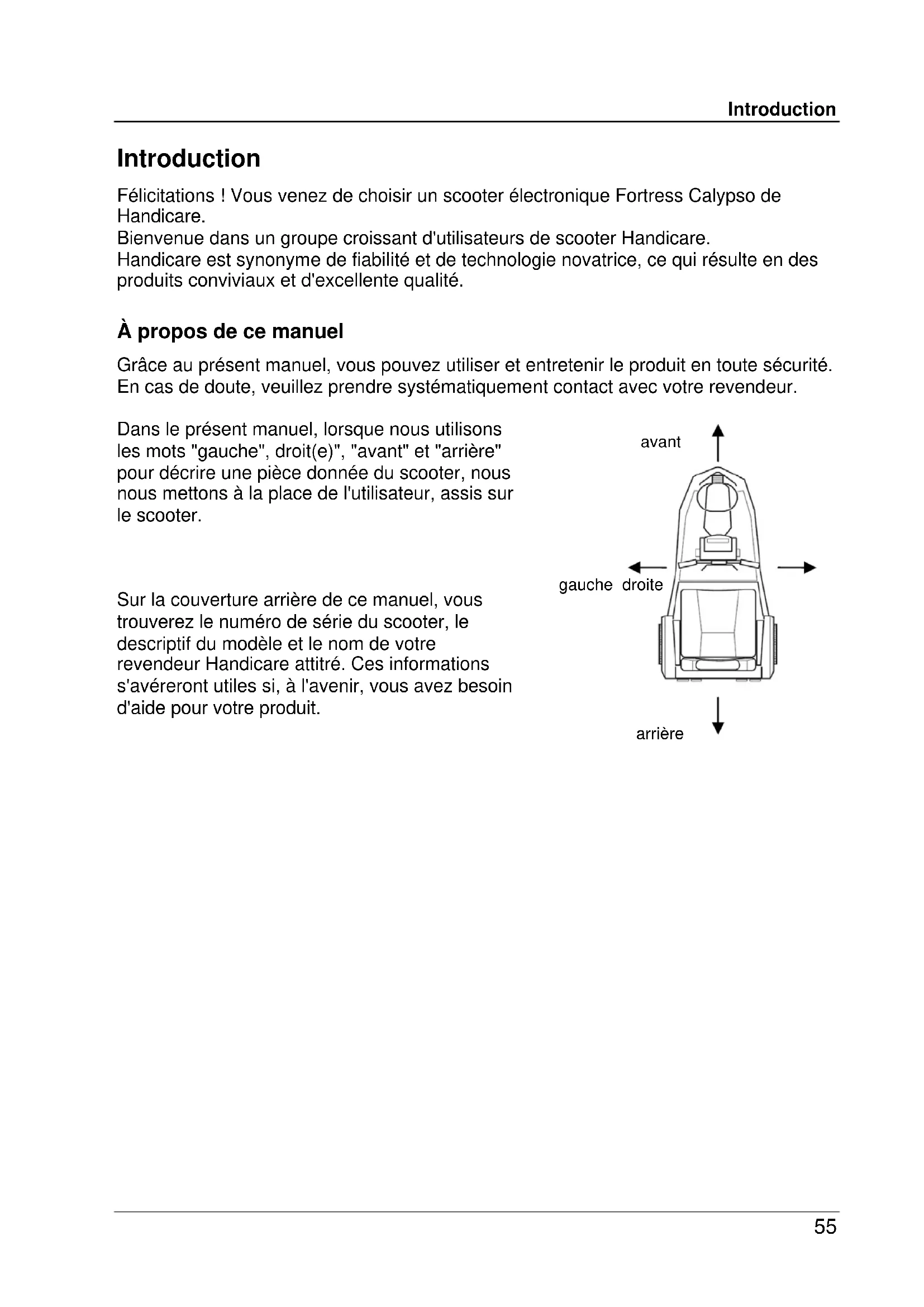 Sur la couverture arrière de ce manuel, vous trouvrez le numéro de série du scooter, le descriptif du modèle et le nom de votre revendeur Handicare attitré. Ces informations s'avéreront utiles si, à l'av开来, vous avez besoin d'aide pour votre produit.
