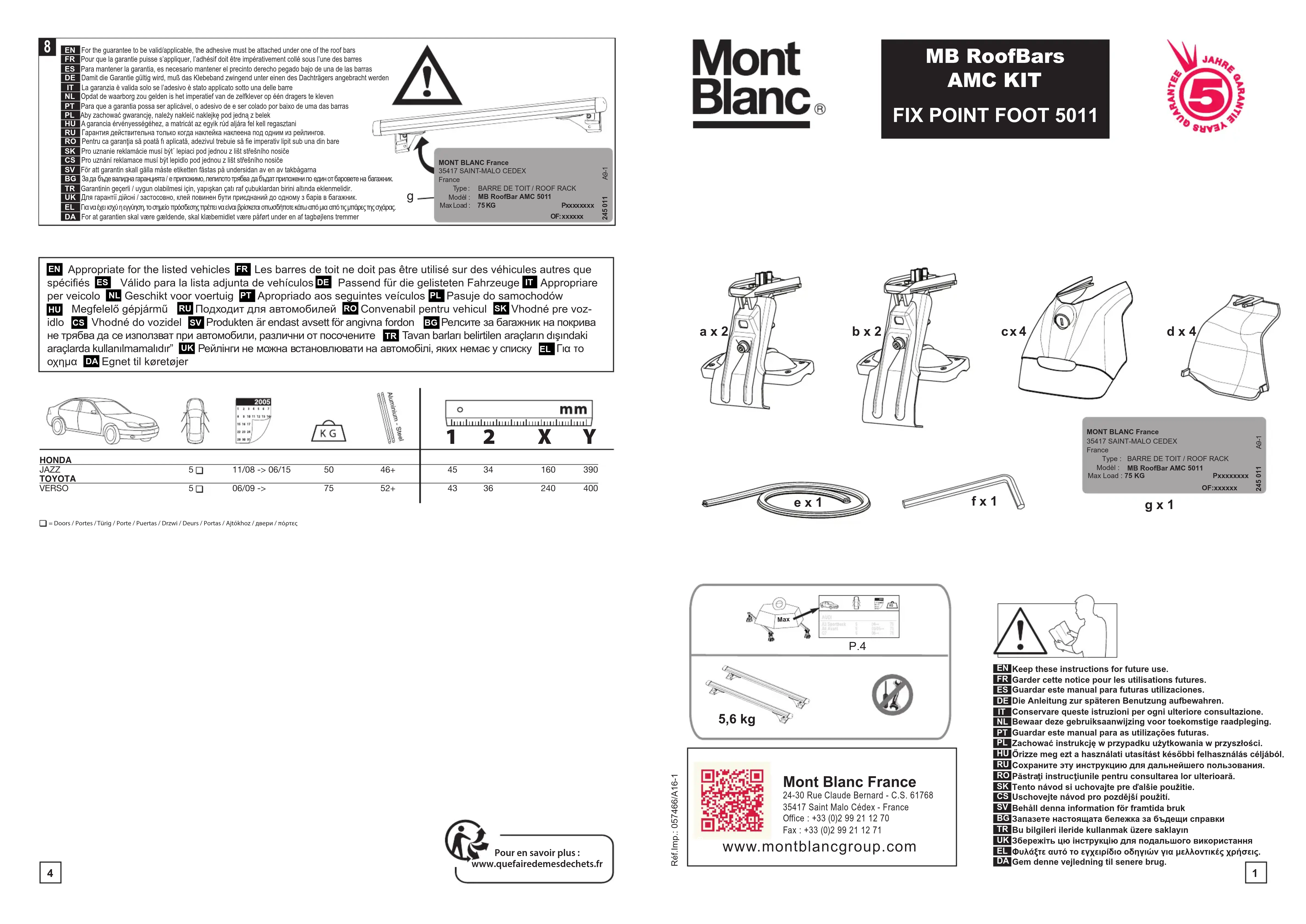 AMC 5011 - Porte-bagages Mont Blanc - Notice d'utilisation et mode d'emploi gratuit