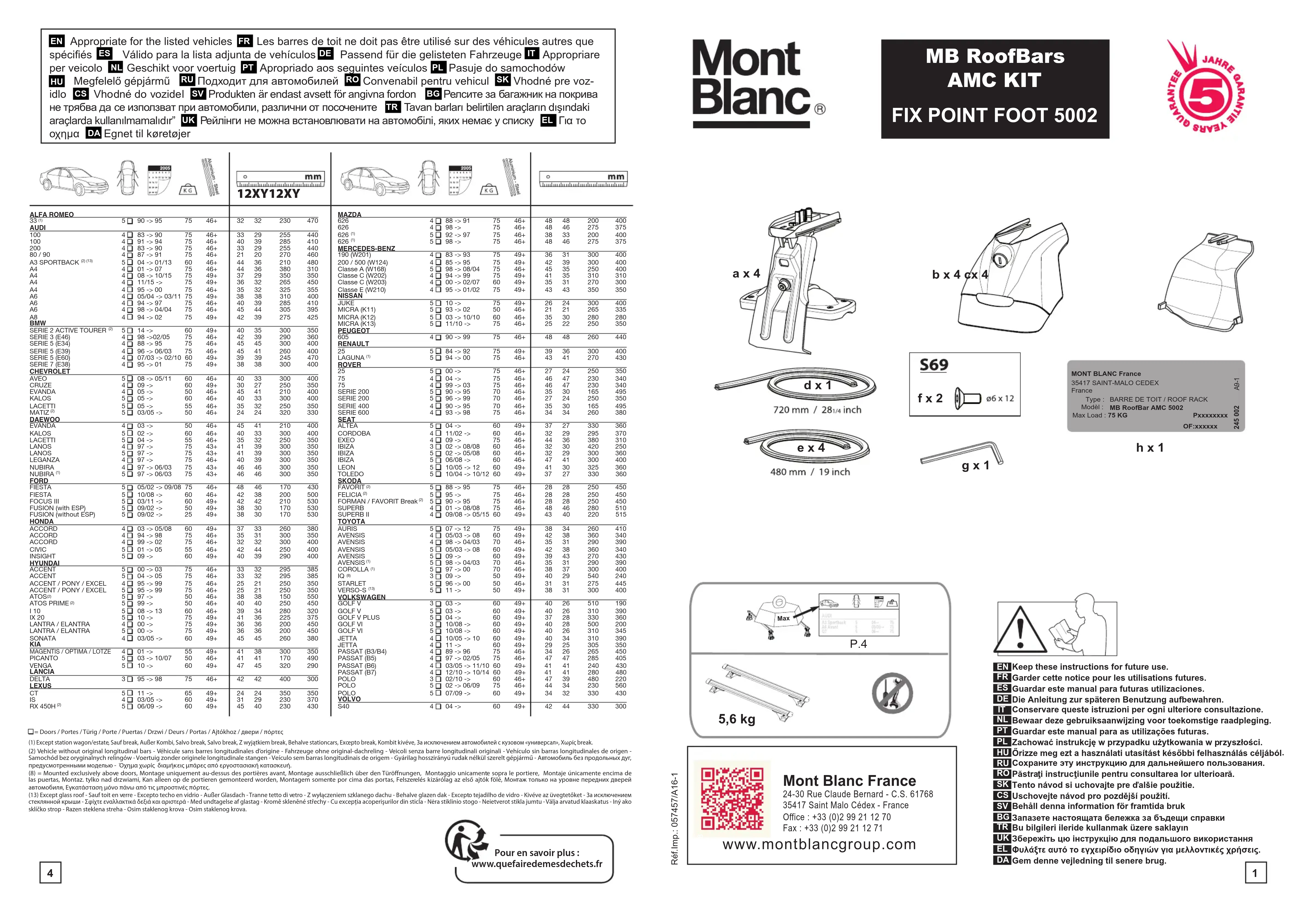 AMC 5002 - Porte-bagages Mont Blanc - Notice d'utilisation et mode d'emploi gratuit