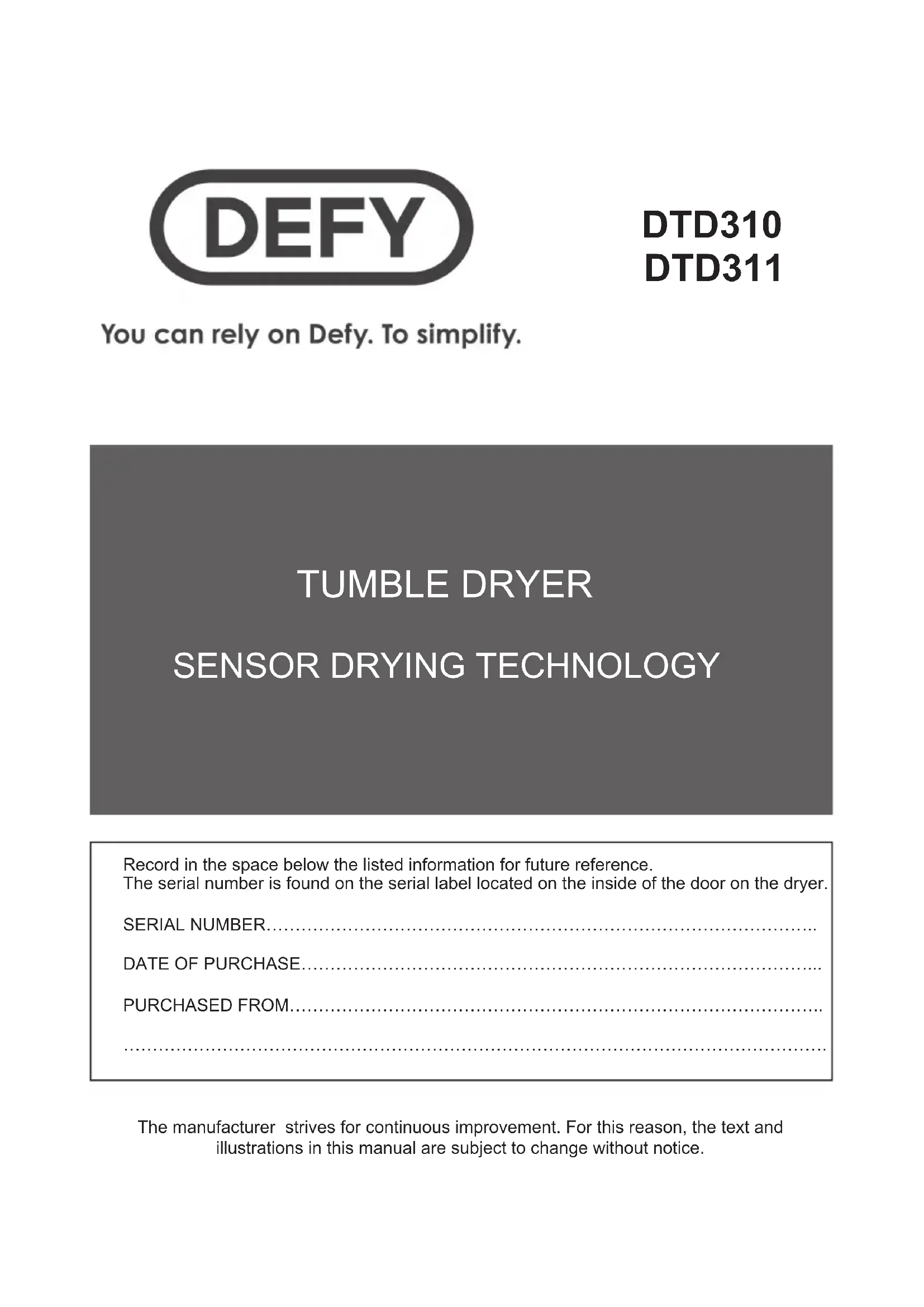 Téléchargez la notice de votre Seche linge au format PDF gratuitement ! Retrouvez votre notice DTD 311 - Defy et reprennez votre appareil électronique en main. Sur cette page sont publiés tous les documents nécessaires à l'utilisation de votre appareil DTD 311 de la marque Defy.