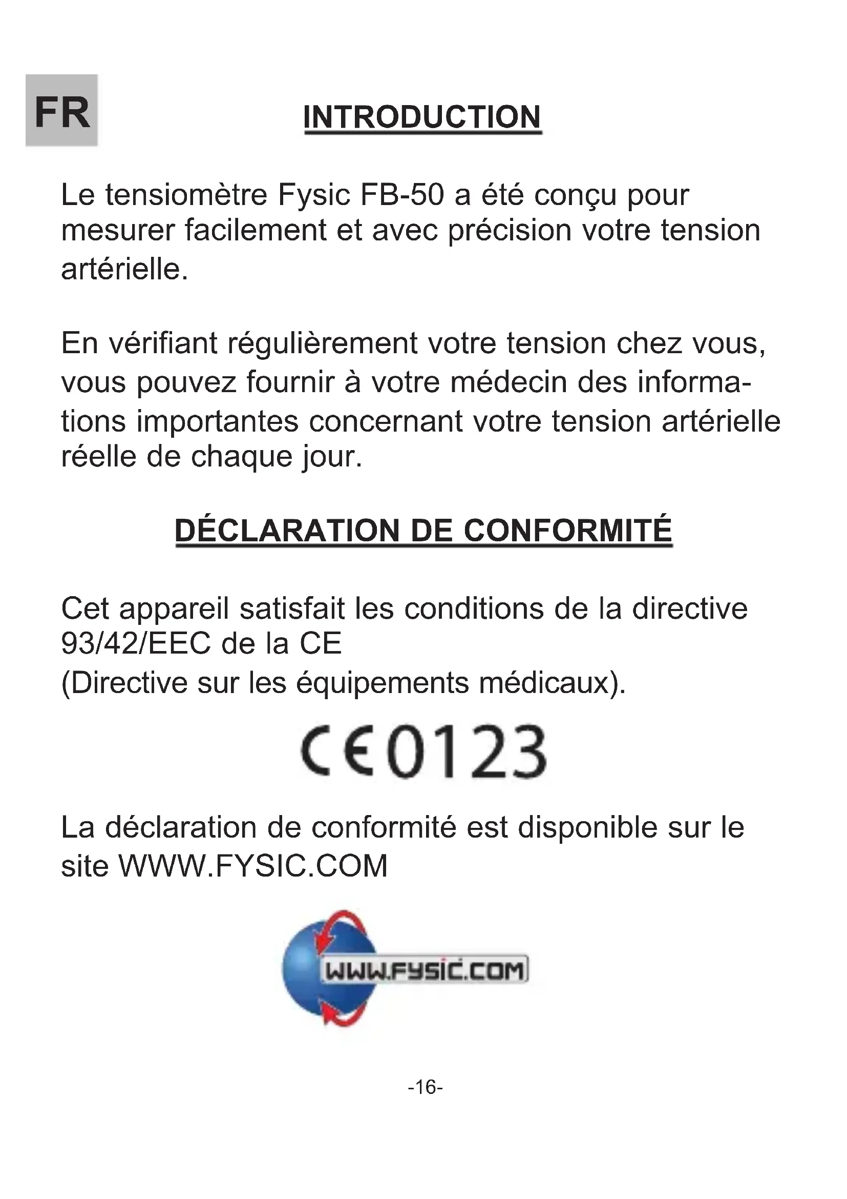La déclaration de conformité est disponible sur le site WWW.FYSIC.COM