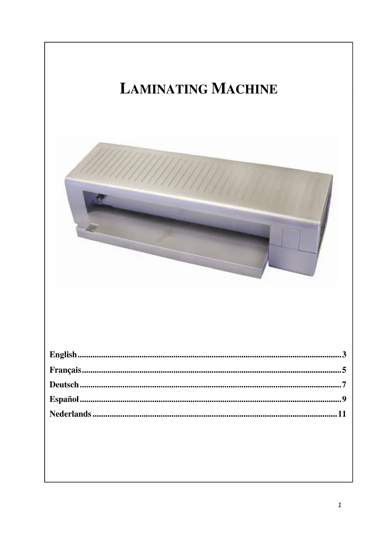 Nous vous remercions d'avoir choisi cette plastifieuse. Désormais, vous pouvez protéger de l'eau et de la poussière vos documents favoris, cartes, lettres, papiers officiels, etc. Suivez les consignes d'utilisation et conservez-les précieusement.
