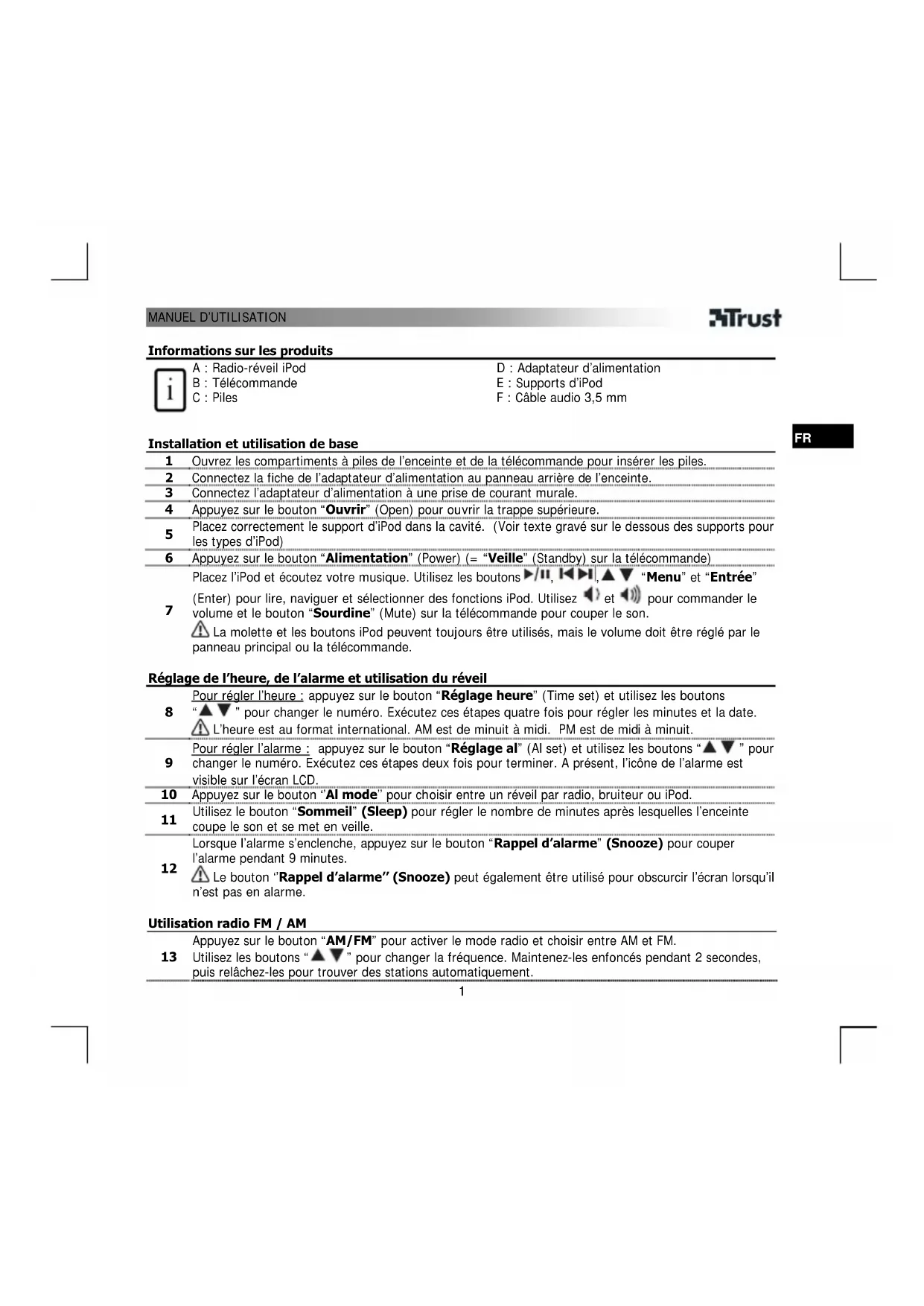 SP2993Wi - Radio-réveil TRUST - Notice d'utilisation et mode d'emploi gratuit