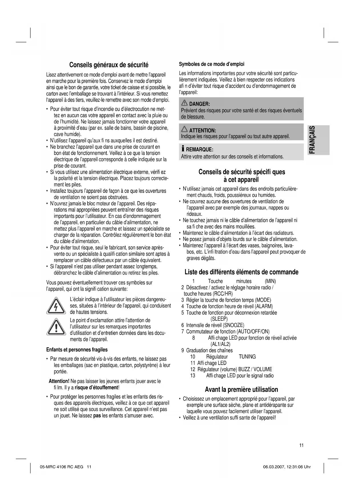 - Veillez à une ventilation suffi sante de l’appareil! 05-MRC 4106 RC AEG 11 06.03.2007, 12:31:06 Uhr12 FRANÇAIS FRANÇAIS