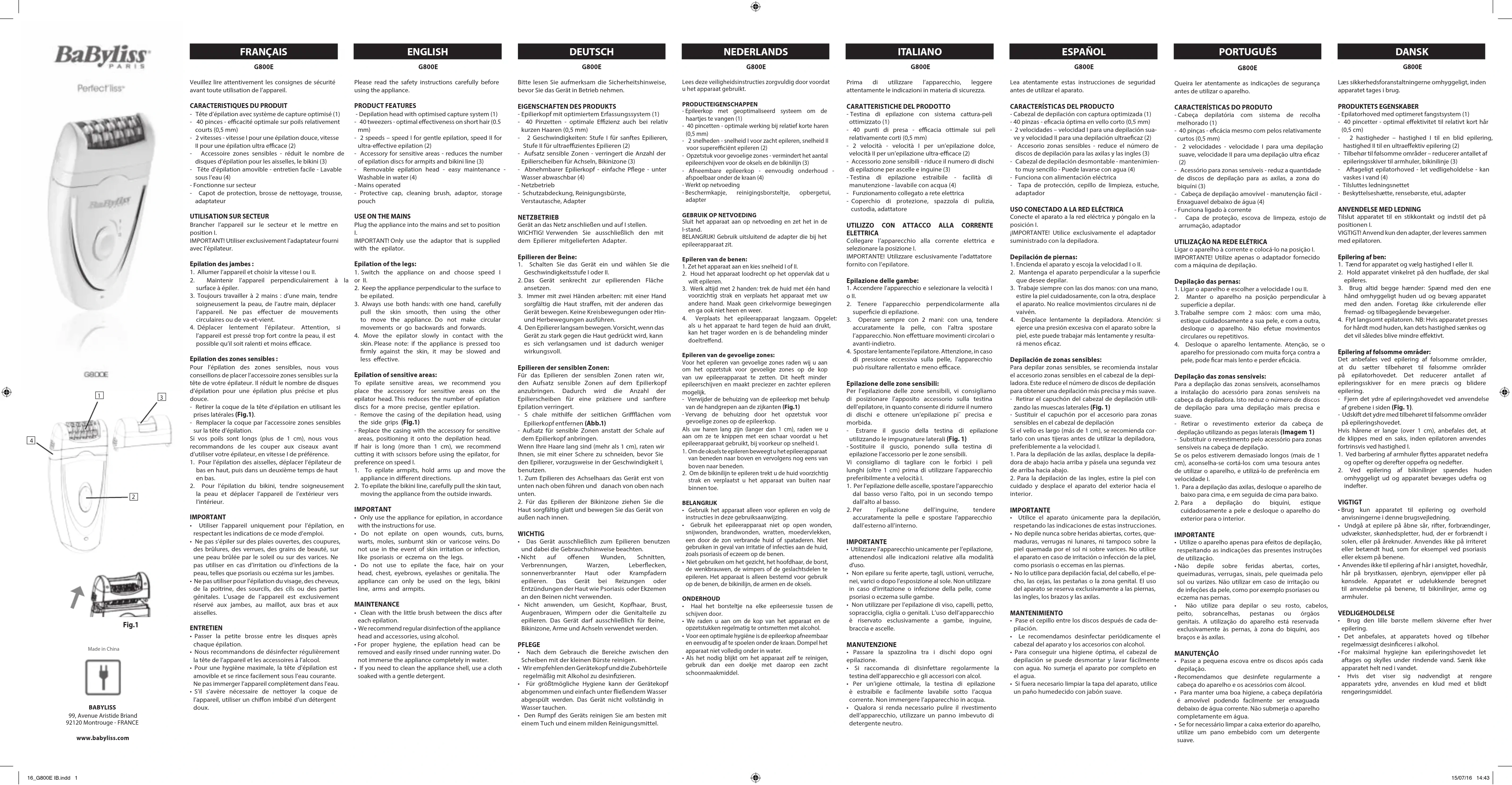 MODE D'EMPLOI Perfect´liss G800E BABYLISS