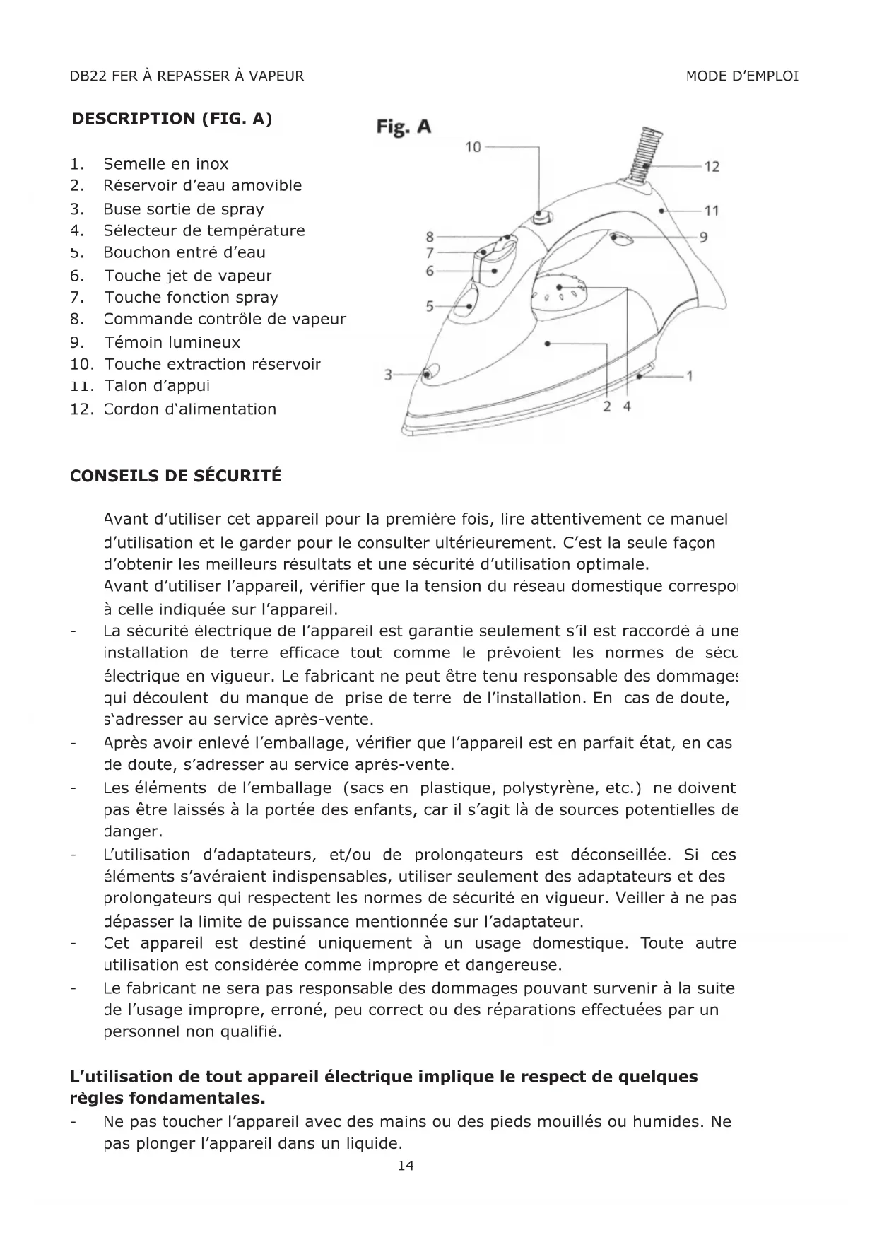 DB22 - Fer à repasser Soba - Notice d'utilisation et mode d'emploi gratuit