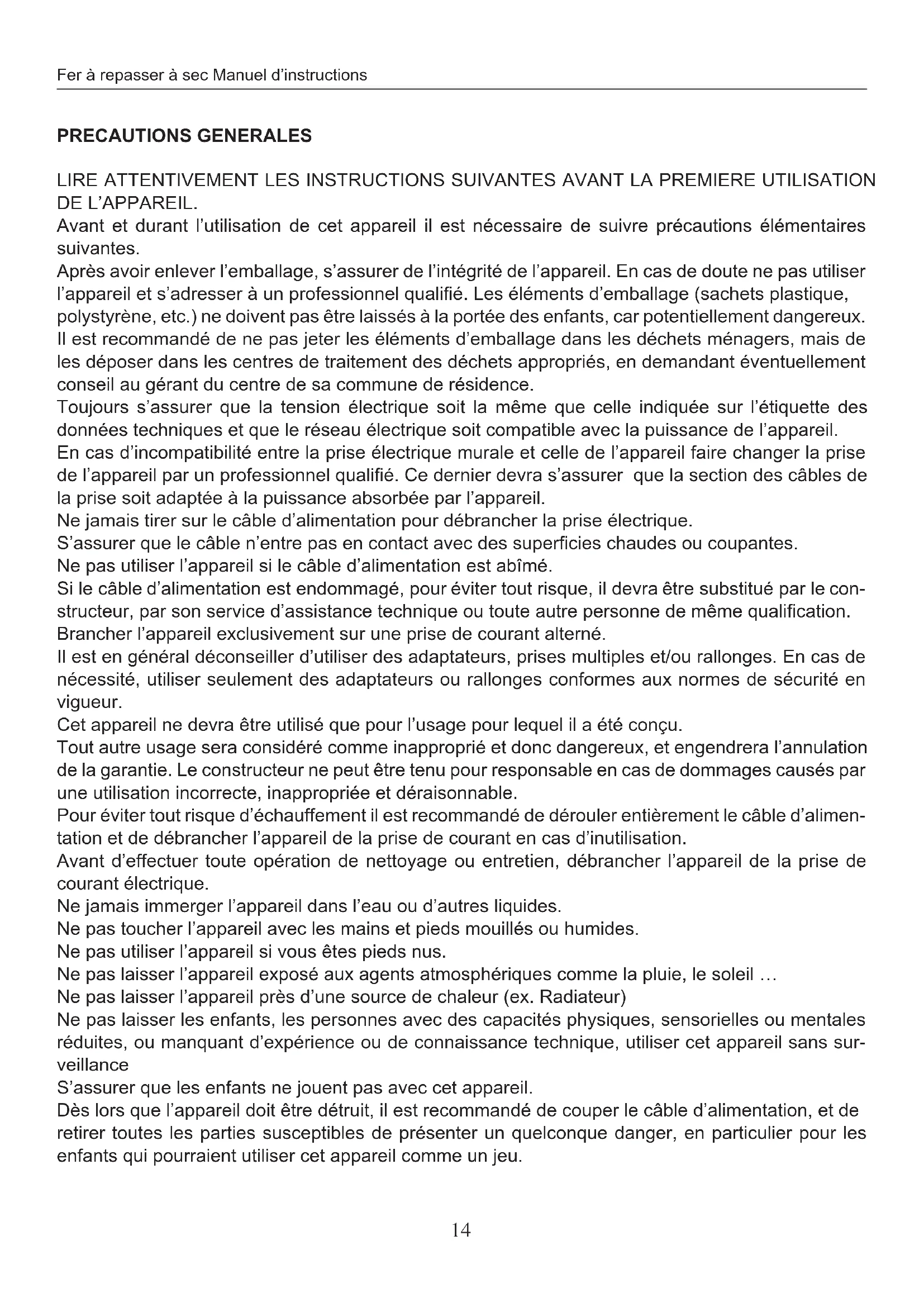 PRECAUTIONS D'USAGE