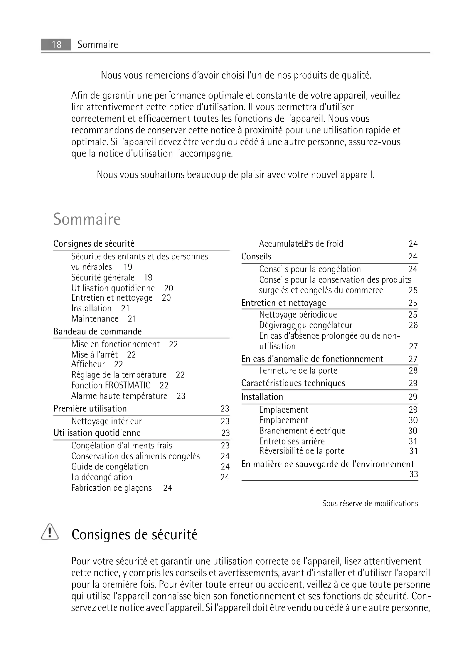 - Cet apparéil est destiné uniquement à la conservation d'aliments et/ou de boissons dans le cadre d'un usage domestique normal, tel que celui décrit dans la présente notice.