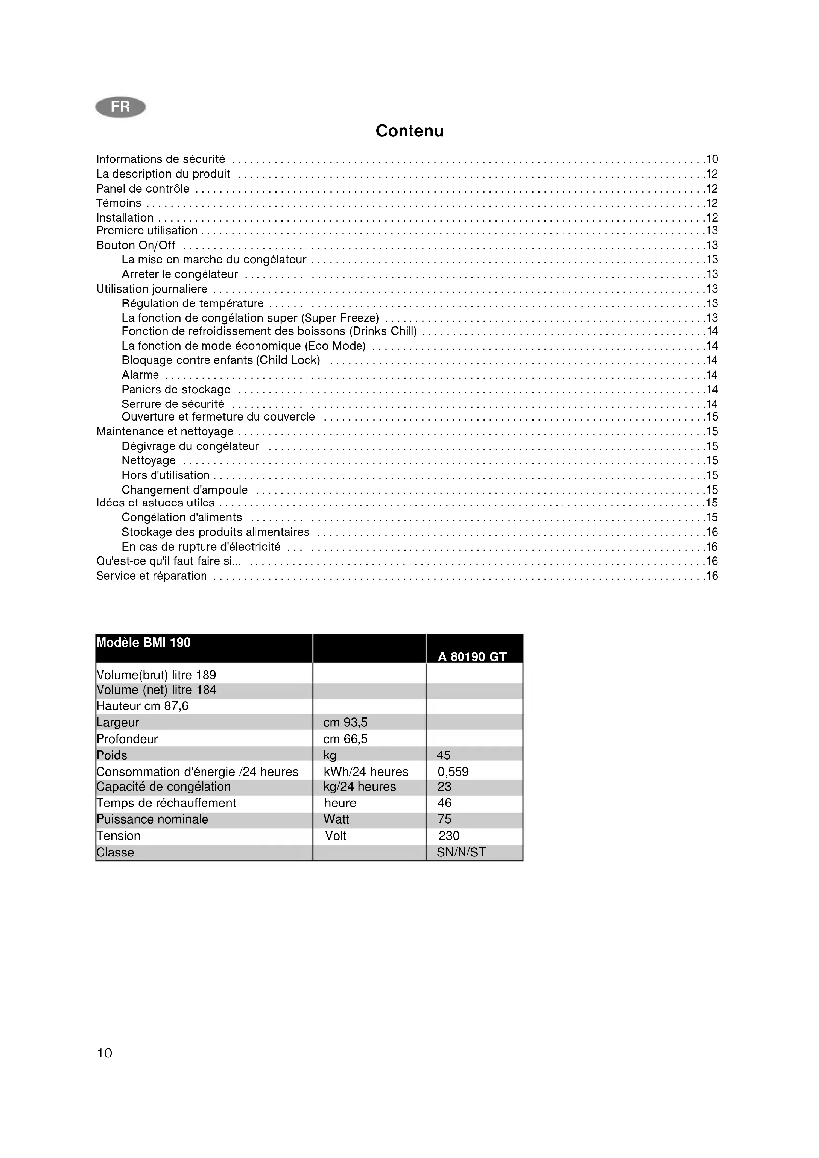 | Caractéristiques techniques | Volume utile : 190 L |