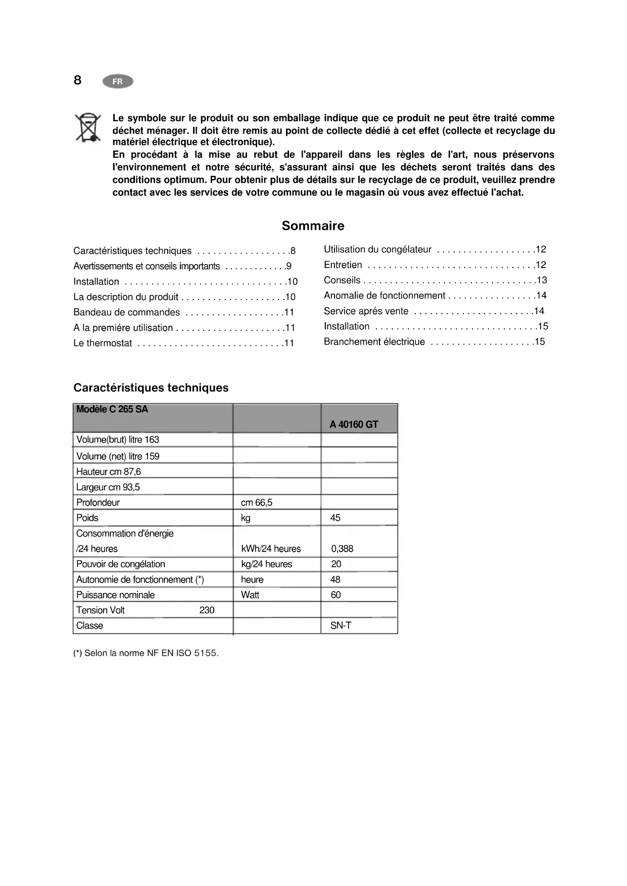 Lors de la mise au rebut de votre apparéil, et pour éçarter tout risque corporel, mettez hors d'usage ce qui pourrait désigner un danger : coupez le cable d'alimentation au ras de l' apparéil. Informez-vous auprès des services de votre commune des endroits autorisés pour la mise au rebut de l' apparéil. - Respectez la chaîne de froid lors l'acquisition d'un alimentment jusqu'à sa consommation pour exclure le risque d'intoxication alimentaire.