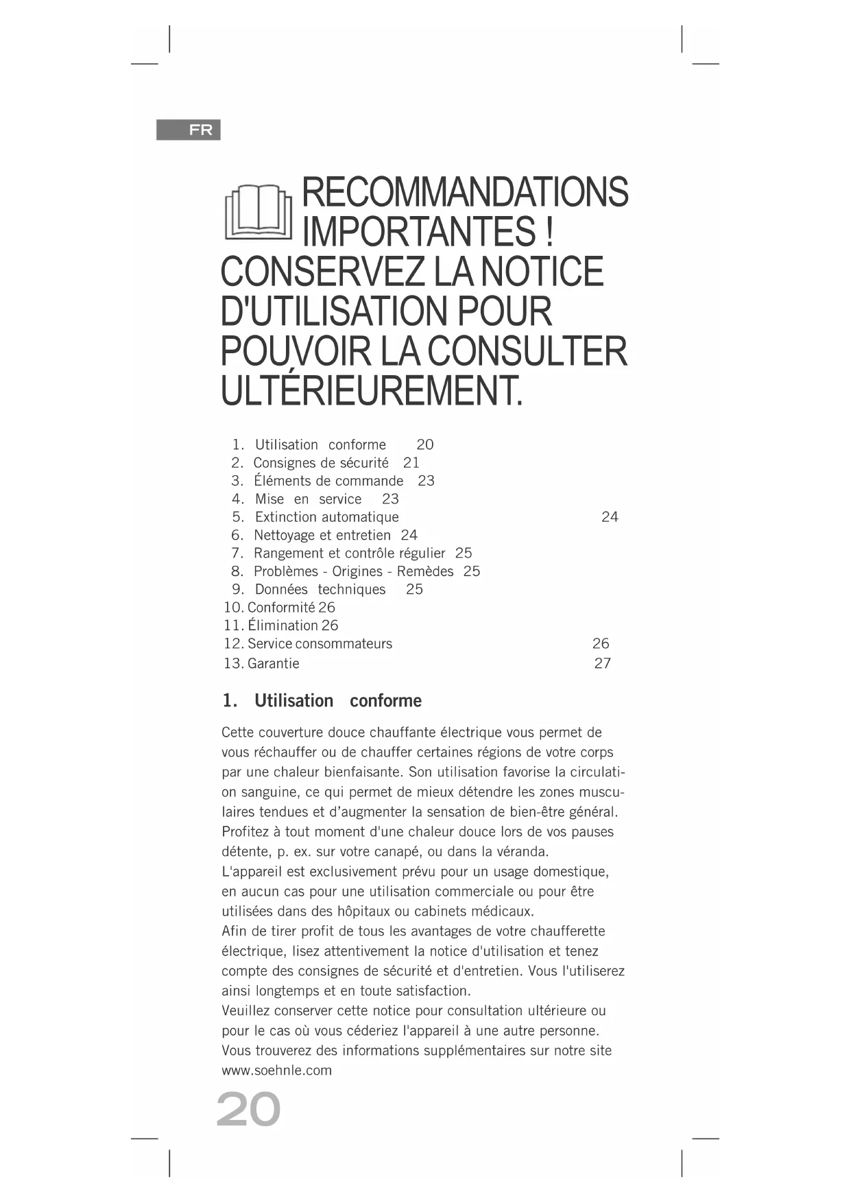 68014 - Couverture/coussin chauffant SOEHNLE - Notice d'utilisation et mode d'emploi gratuit