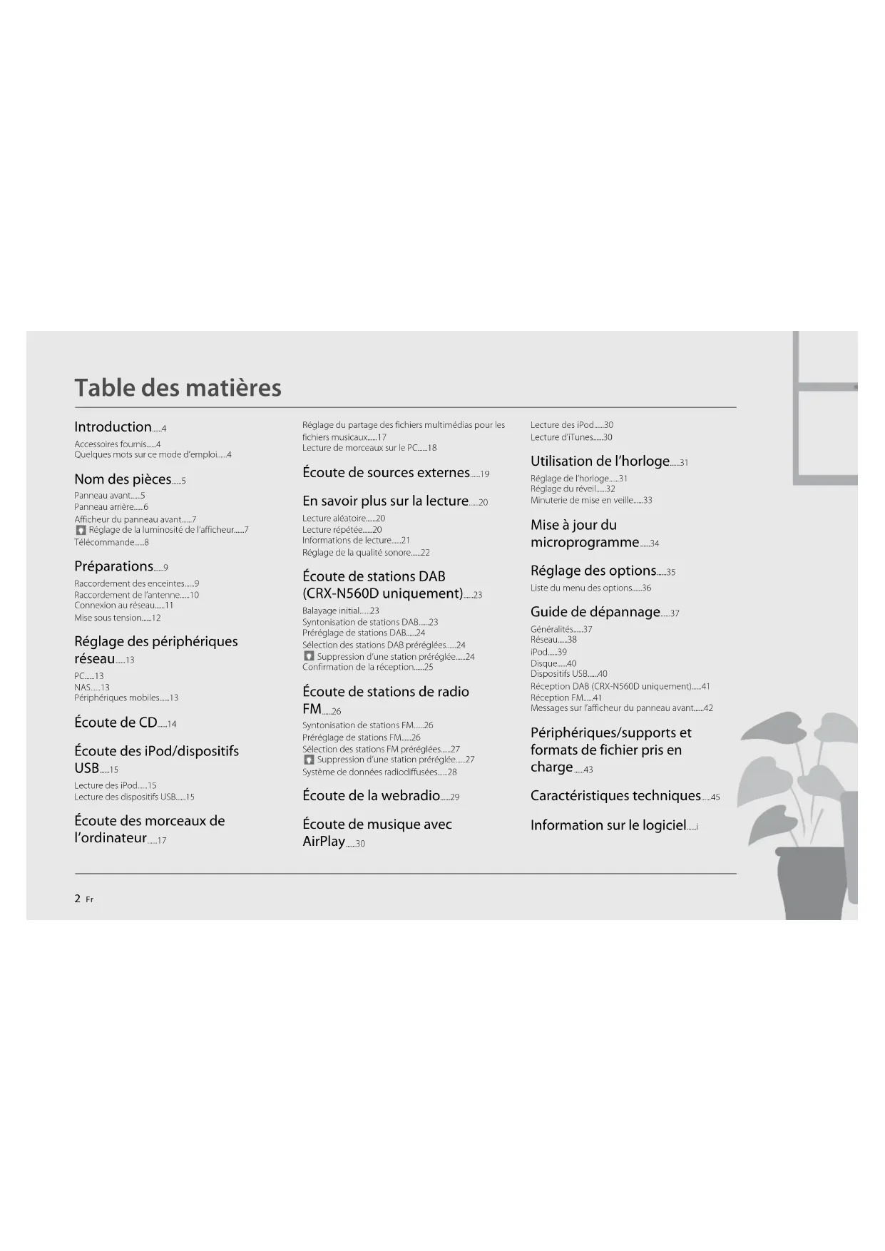 - Réception DAB (CRX-N560D uniquement) p. 41