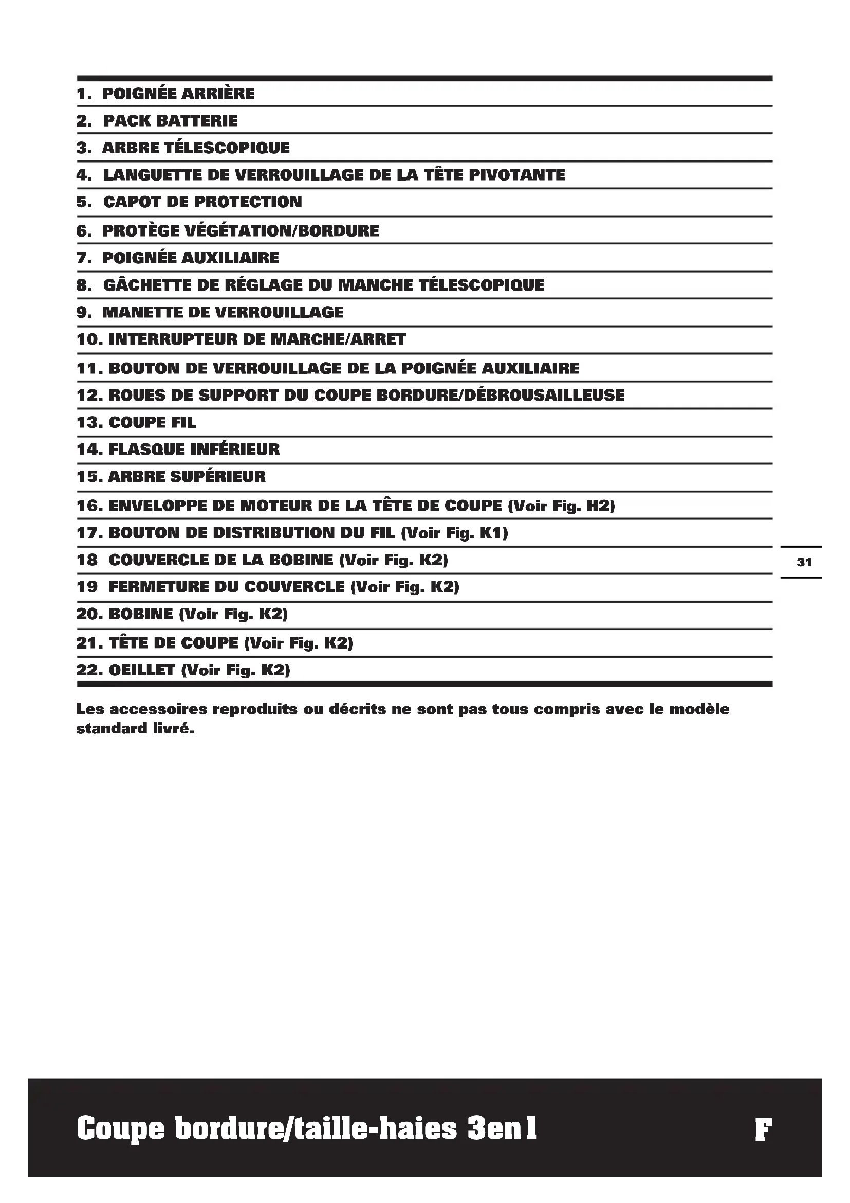 Les accessoires reproduits ou décrits ne sont pas tous compris avec le modèle standard livré.32 Coupe bordure/taille-haies 3en1