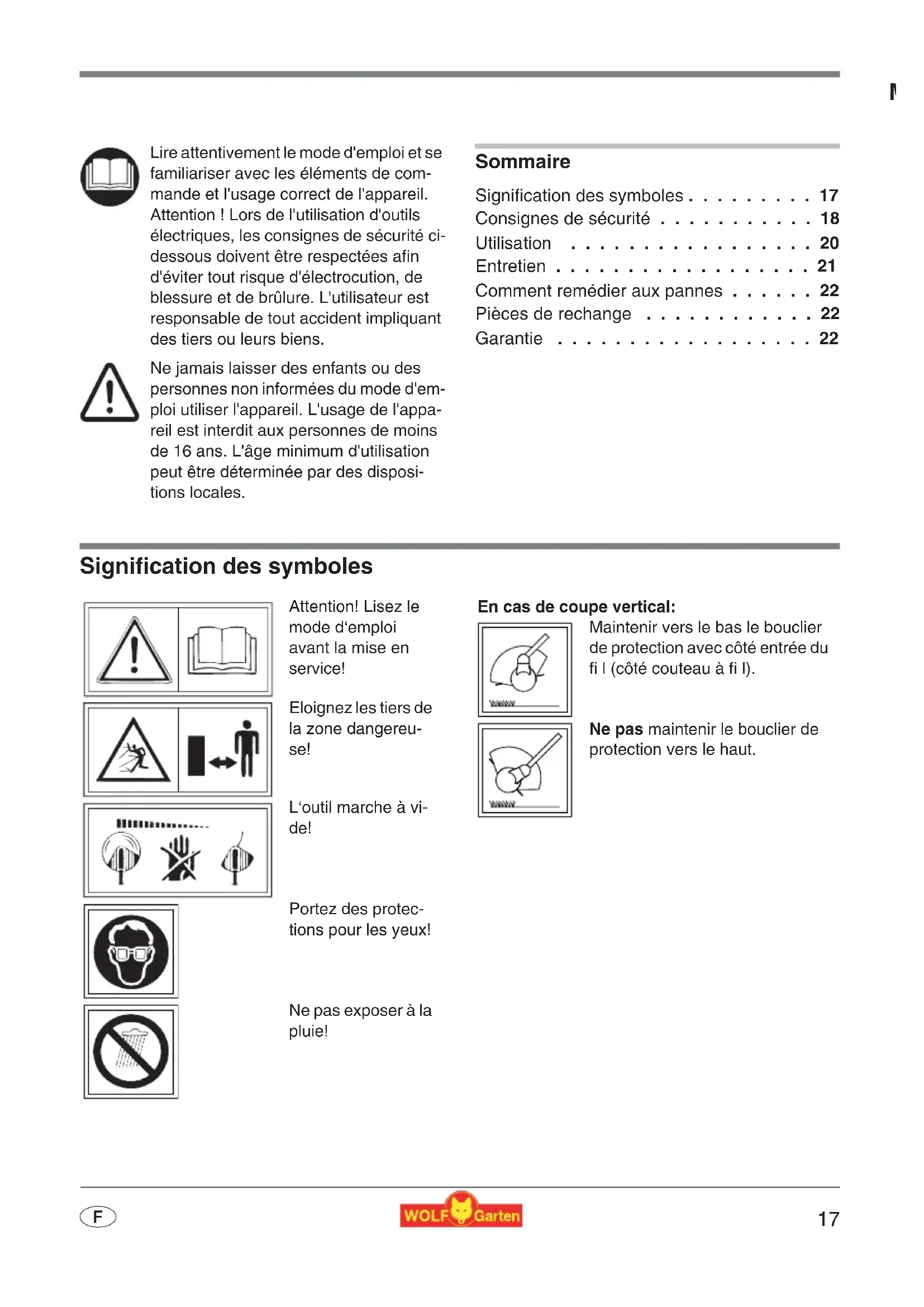 - FMerci d'avoir acheté un produit WOLF Sommaire Signification des symboles p. 17