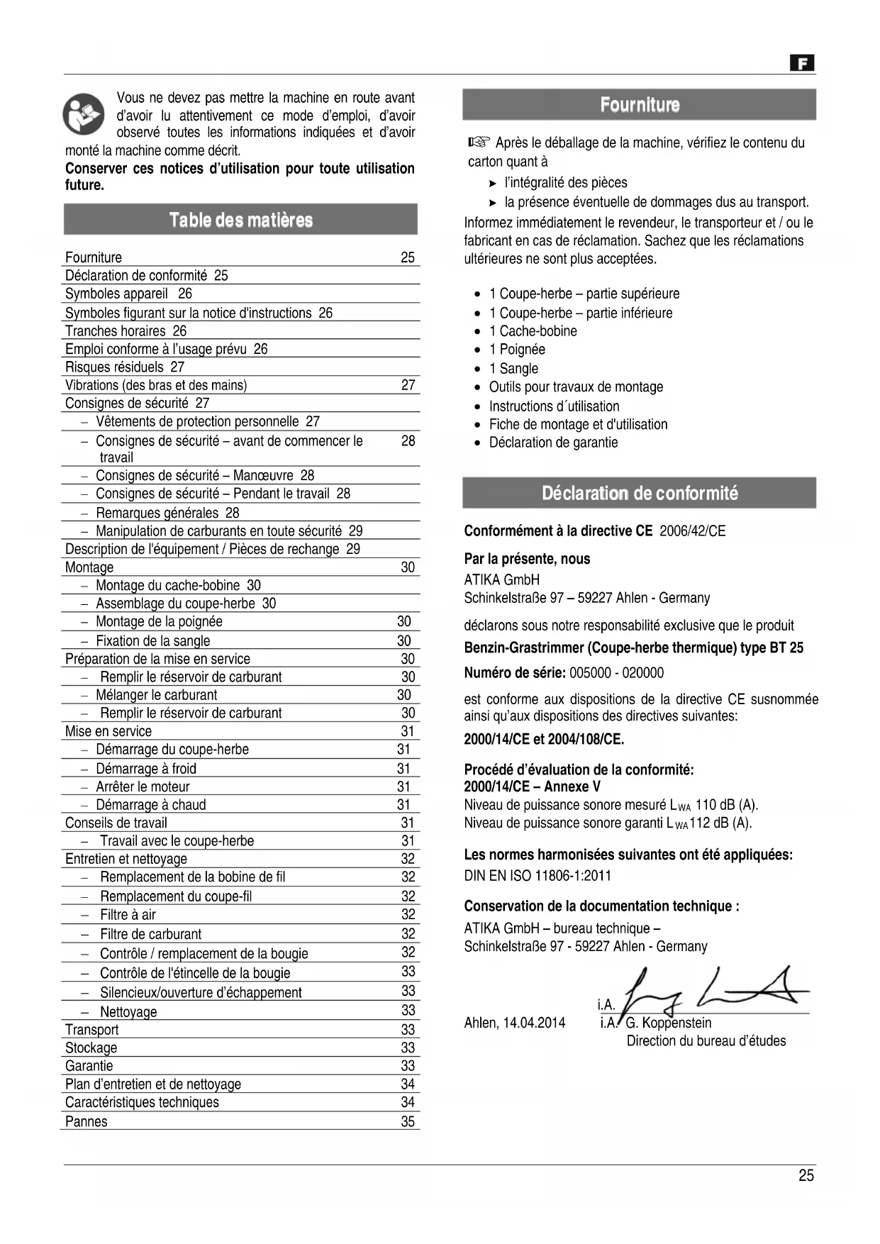 BT 25 - Coupe-herbe ATIKA - Notice d'utilisation et mode d'emploi gratuit
