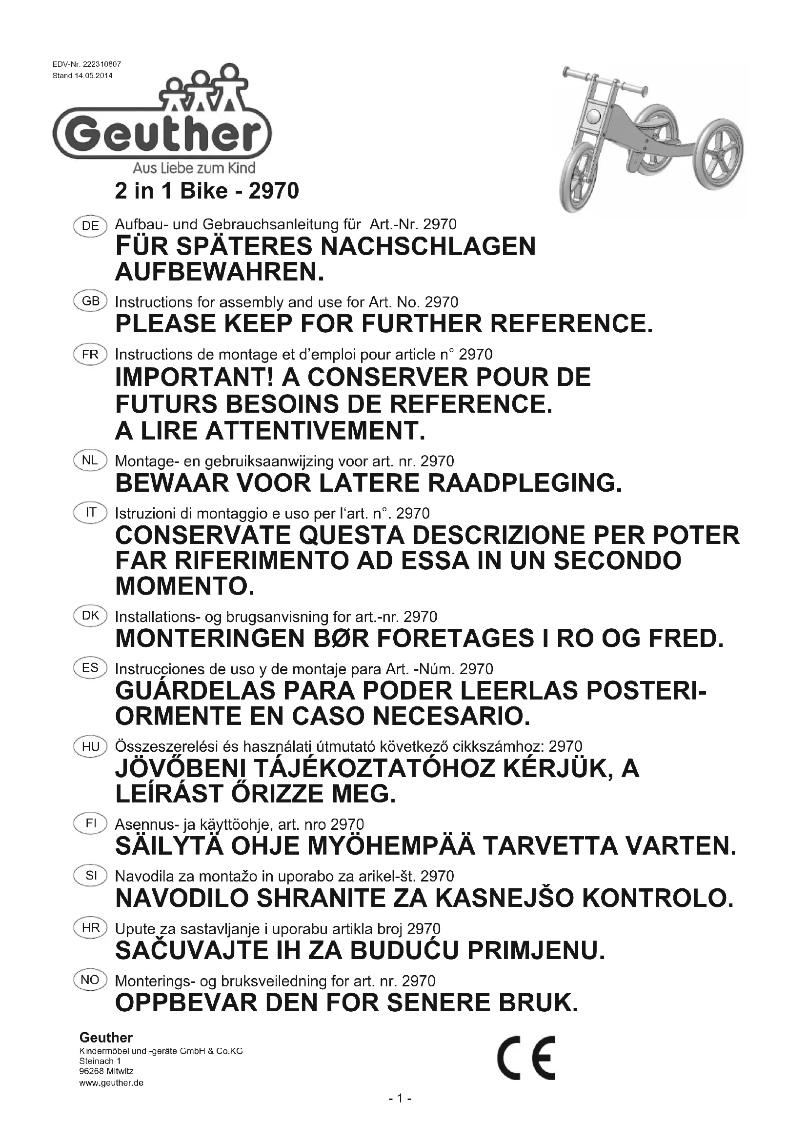 MODE D'EMPLOI 2in1 Bike 2970 Geuther