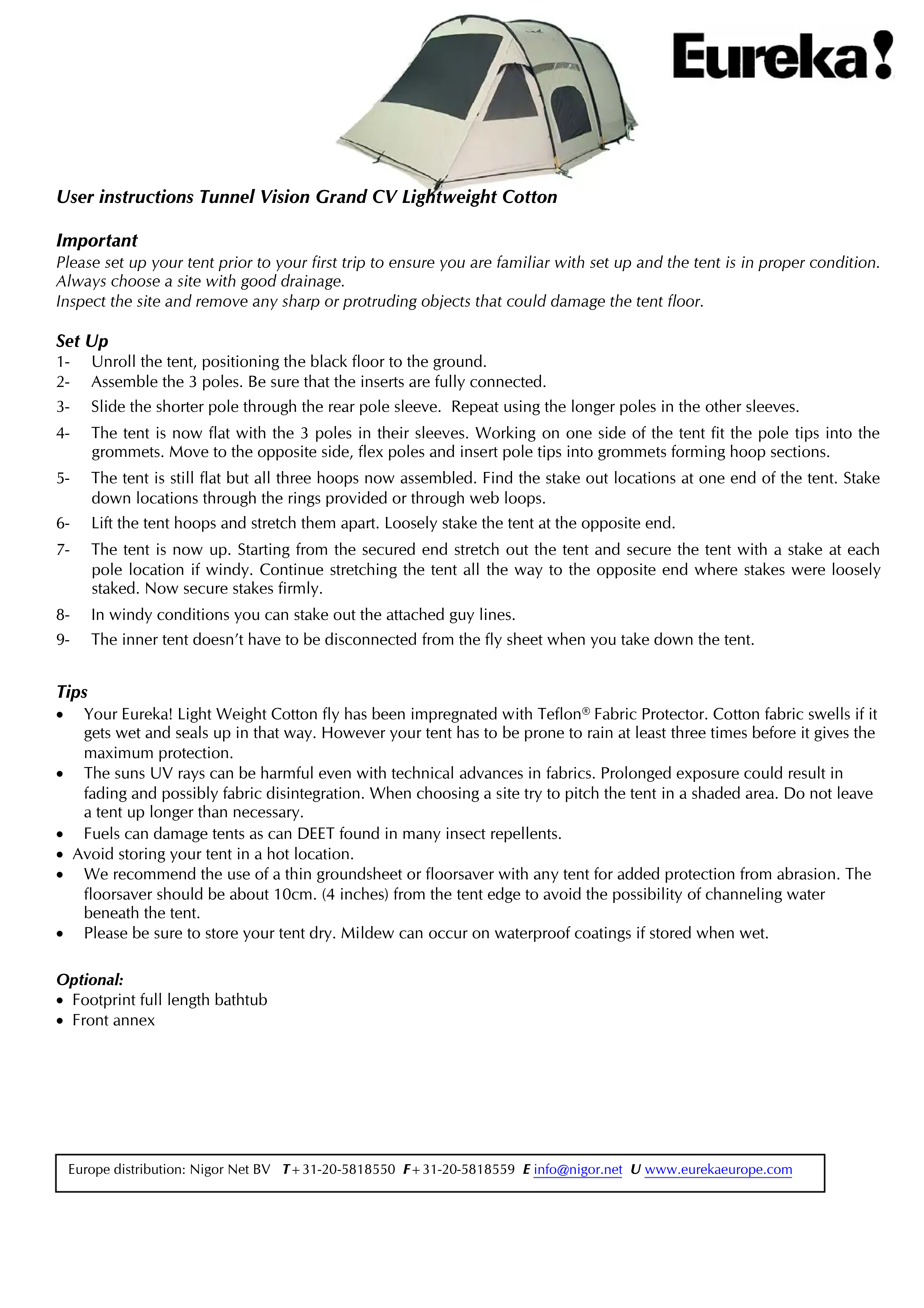 Tunnel Vision Grand CV - Tente EUREKA - Notice d'utilisation et mode d'emploi gratuit