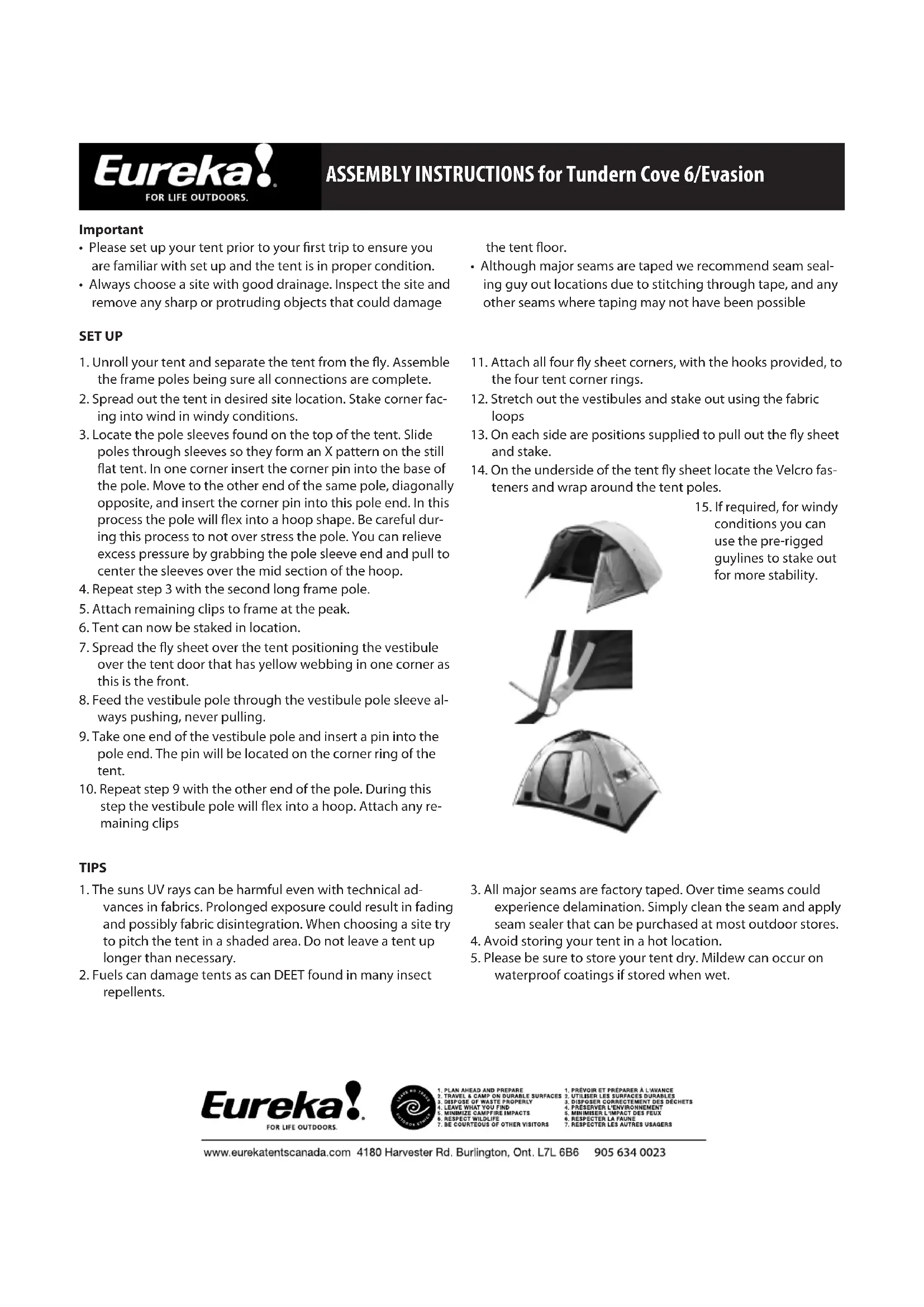 MODE D'EMPLOI Tundern Cove 6 EUREKA