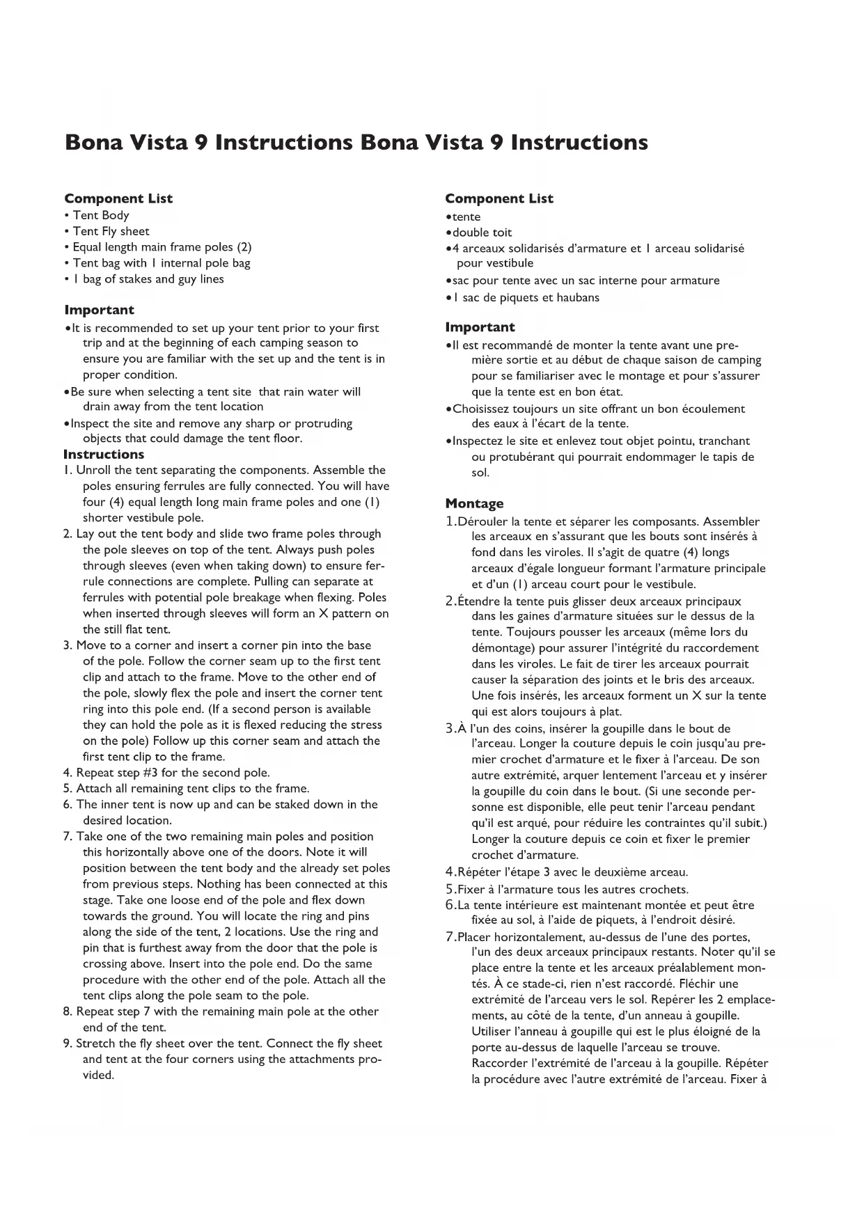 - Il est recommandé de monter la tente avant une pre- mière sortie et au début de chaque saison de camping pour se familiariser avec le montage et pour s’assurer que la tente est en bon état.