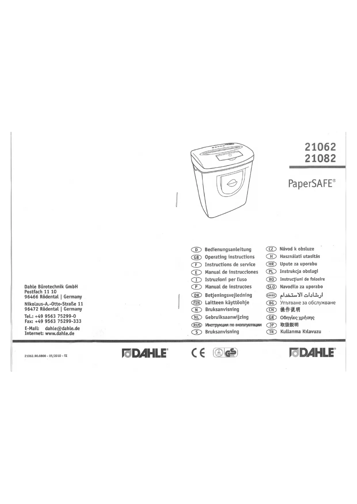 Retrouvez gratuitement la notice de l'appareil PaperSAFE 21082 Dahle au format PDF.