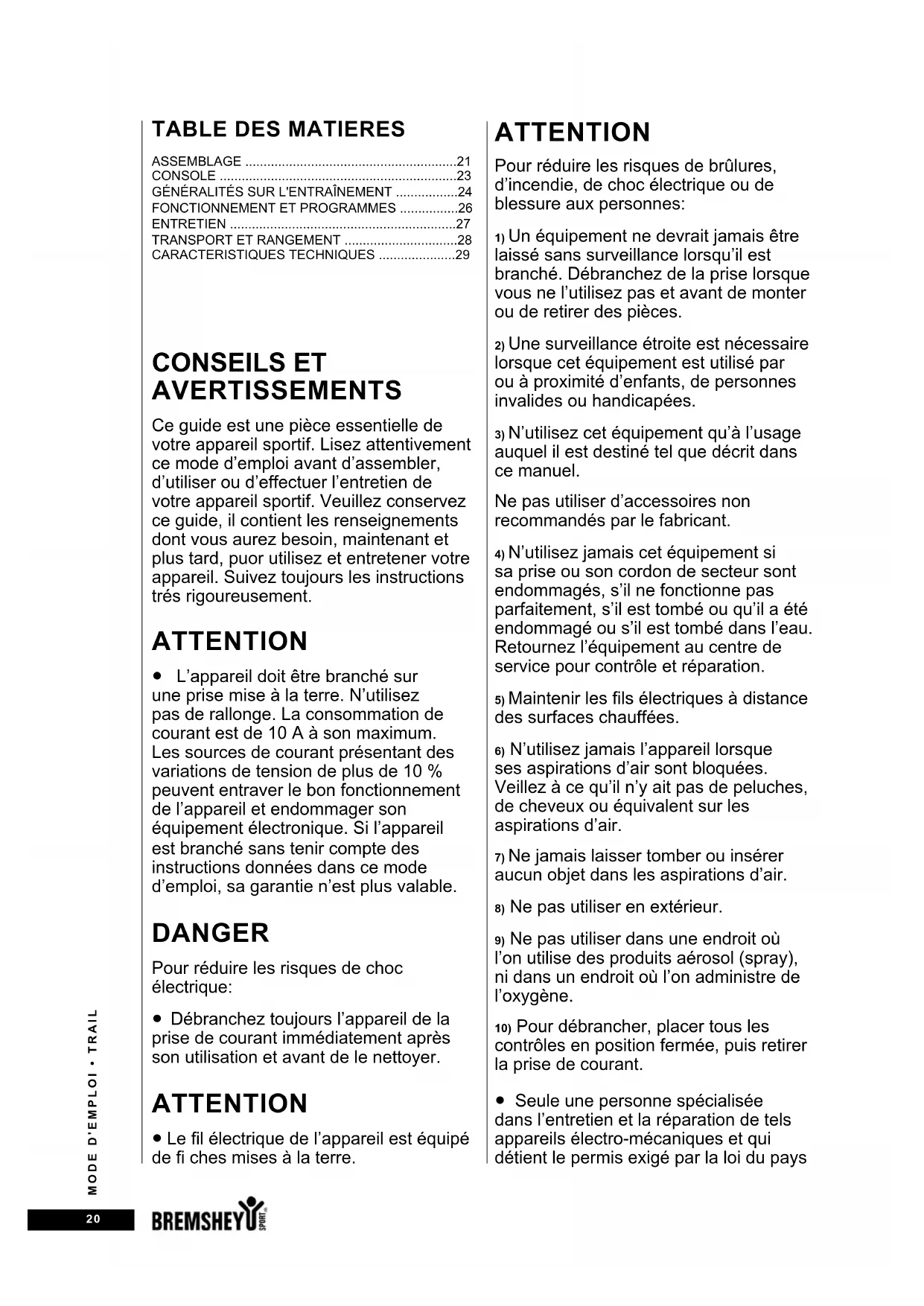 Treadline Trail - Tapis de course Bremshey - Notice d'utilisation et mode d'emploi gratuit