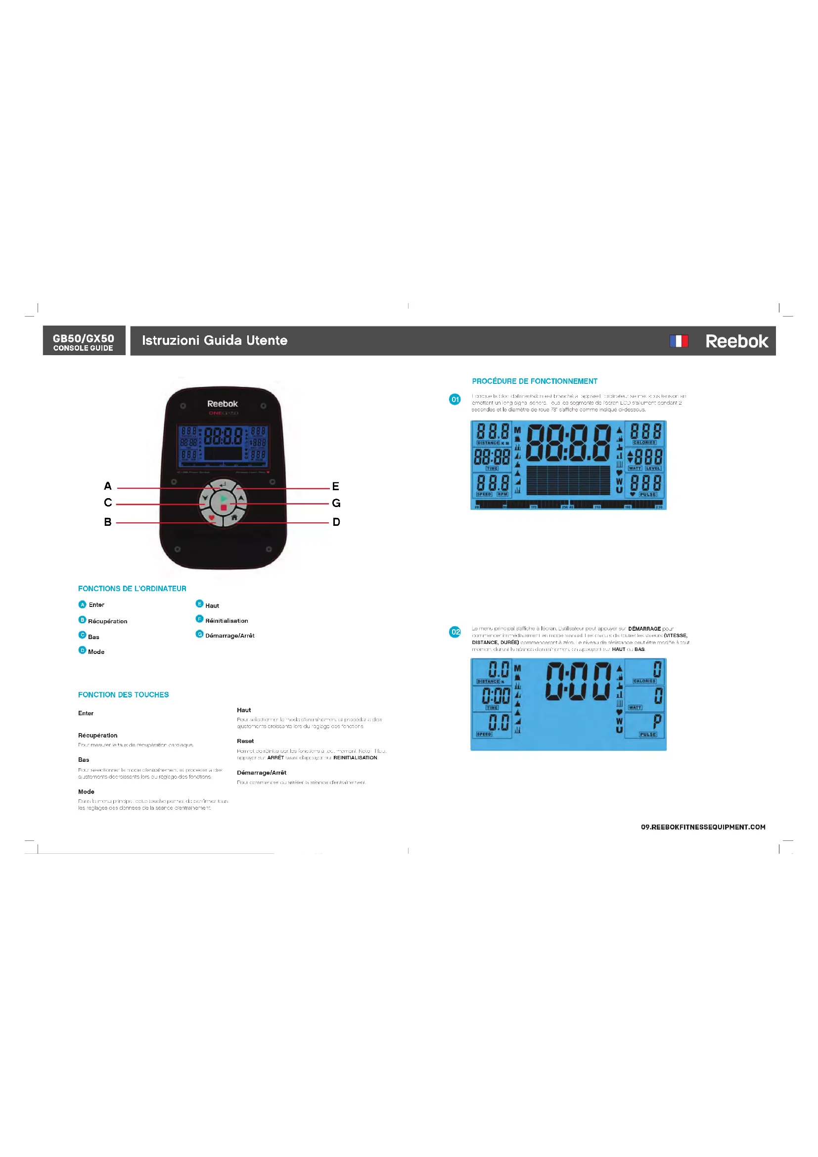 MODE D'EMPLOI One GX50 Reebok