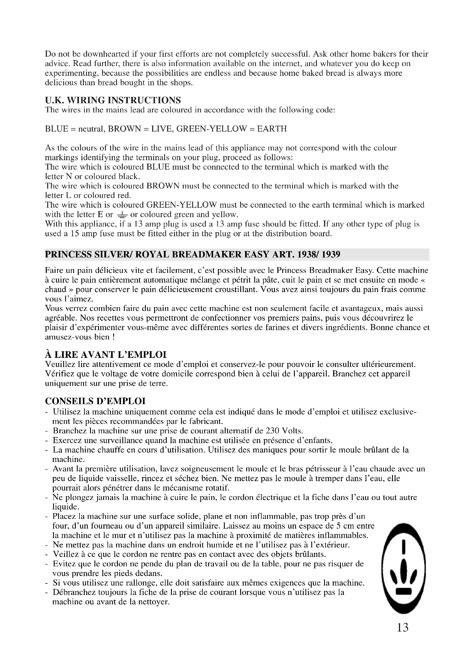 MODE D'EMPLOI Silver Breadmaker Easy 151938 PRINCESS