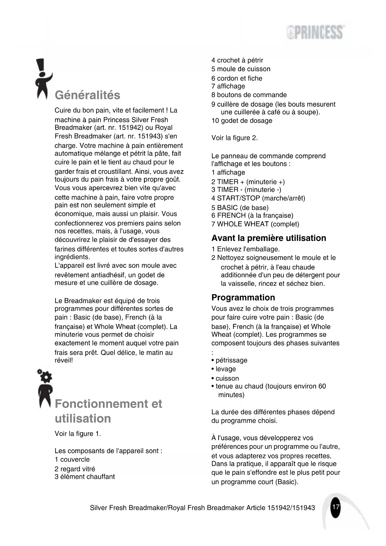 Silver Fresh 151942 - Machine à pain PRINCESS - Notice d'utilisation et mode d'emploi gratuit