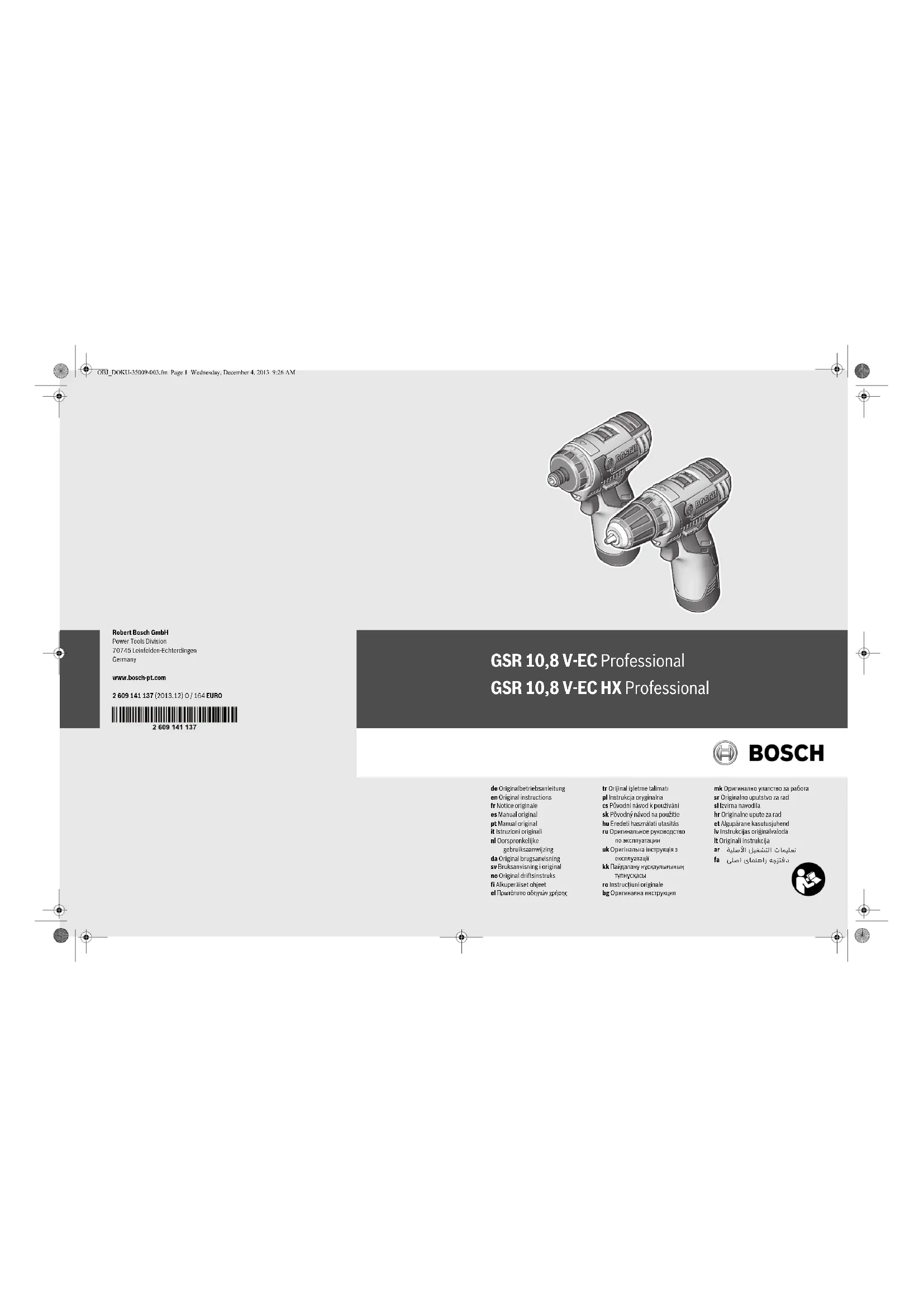 GSR 10.8 VEC HX Professional - Perceuse BOSCH - Notice d'utilisation et mode d'emploi gratuit