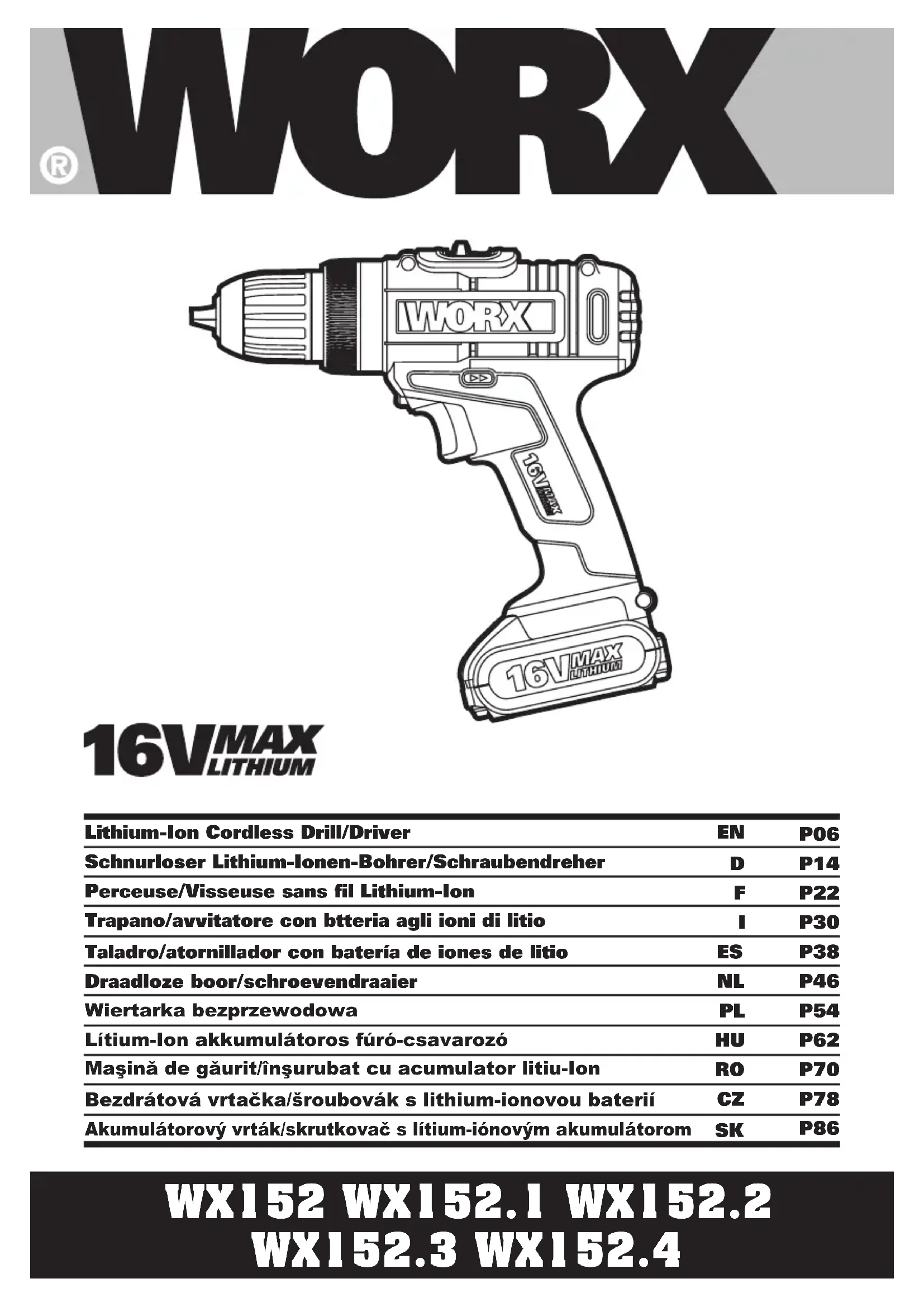 WX152.4 - Perceuse WORX - Notice d'utilisation et mode d'emploi gratuit