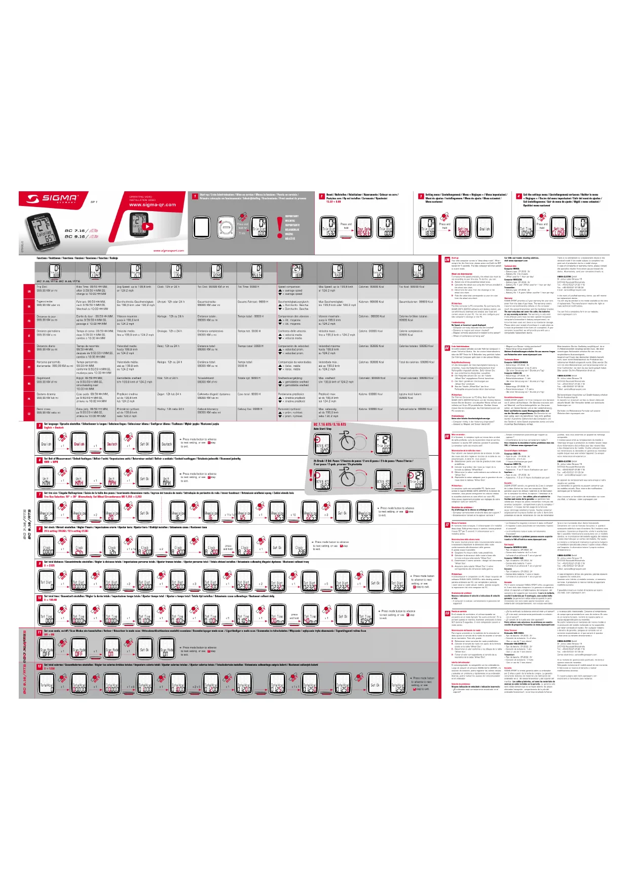 BC 9.16 - Compteur SIGMA - Notice d'utilisation et mode d'emploi gratuit