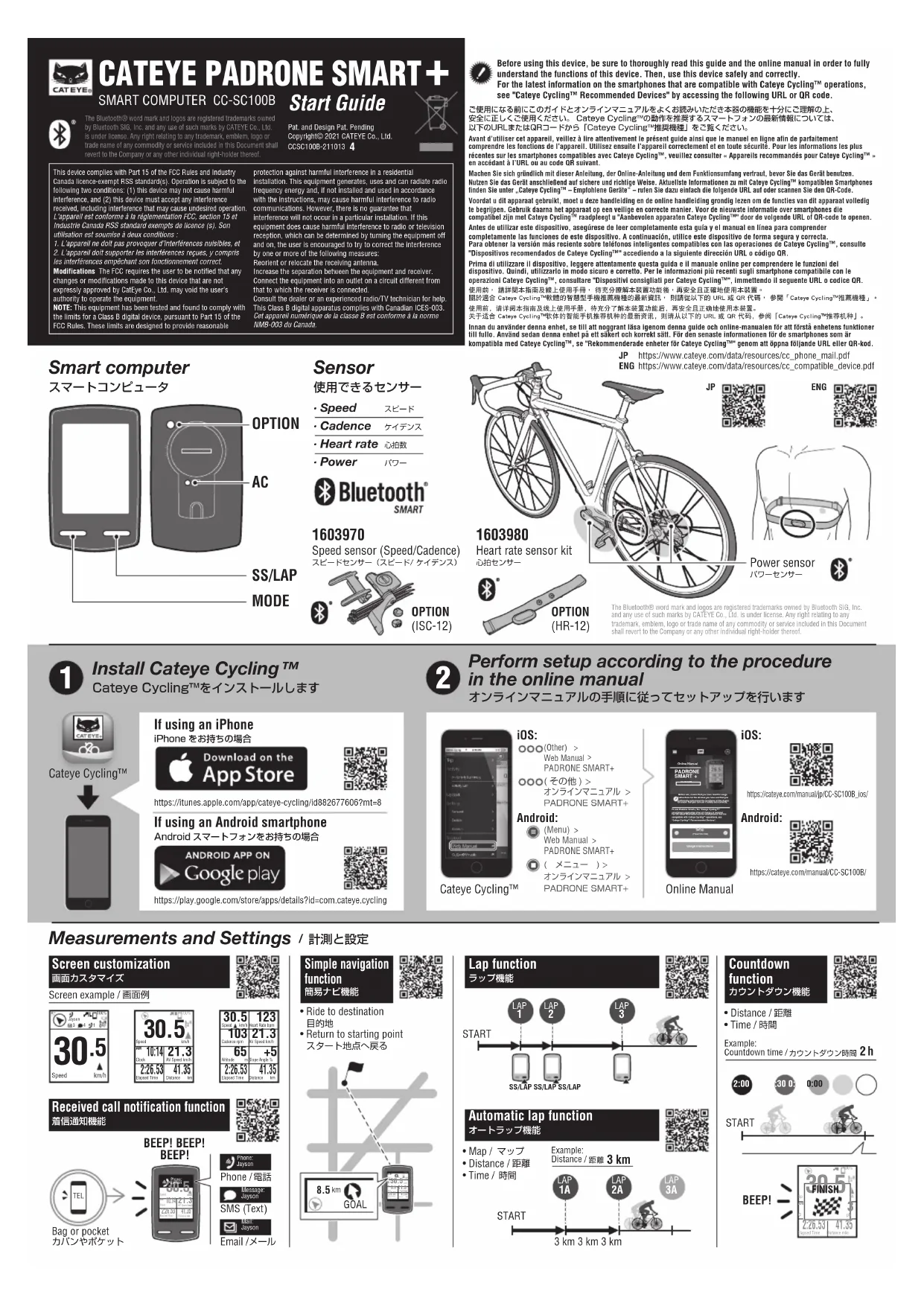 Retrouvez gratuitement la notice de l'appareil Padrone Smart CCSC100B CAT EYE au format PDF.