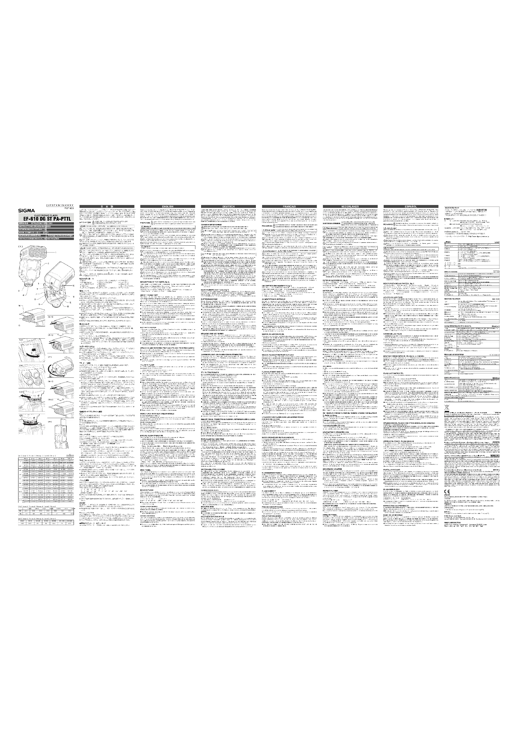 Retrouvez gratuitement la notice de l'appareil EF610 DG ST (Pentax) SIGMA au format PDF.