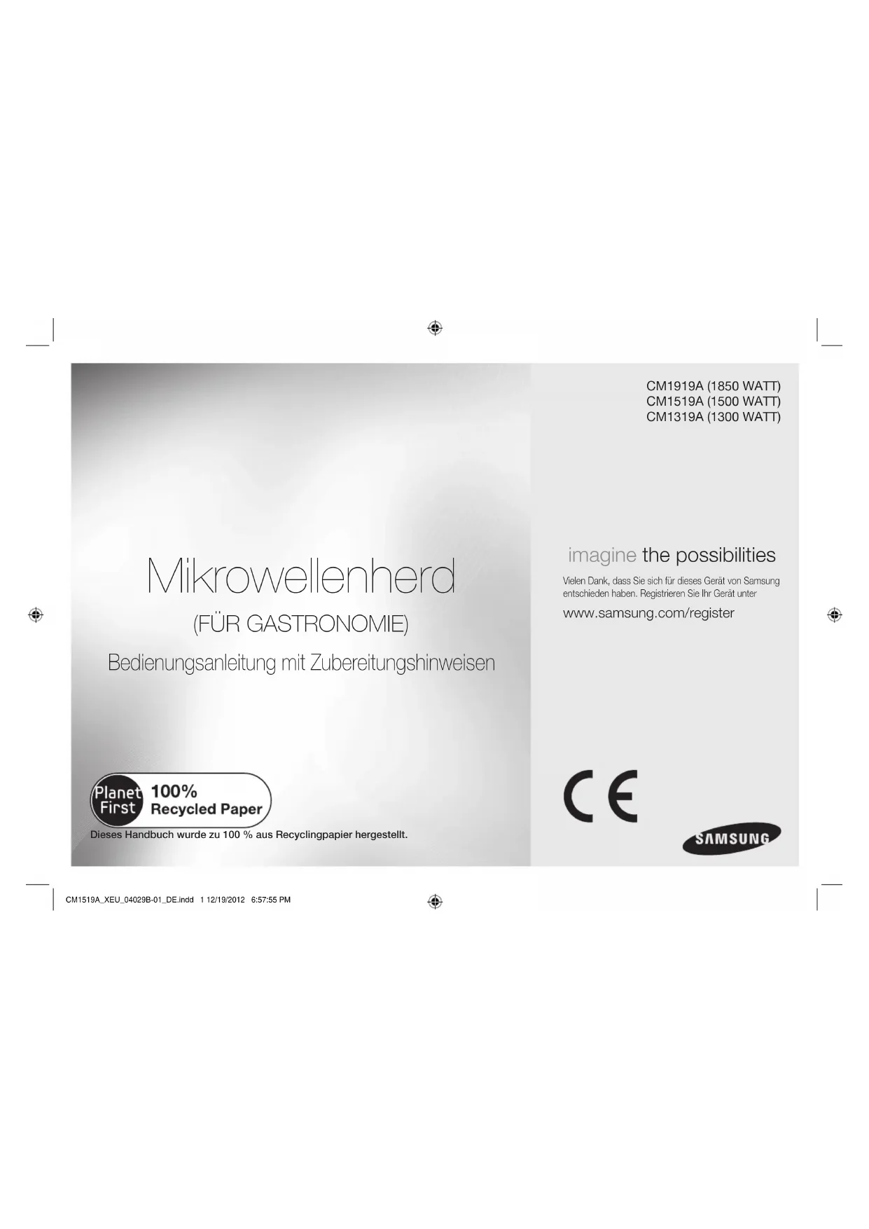 CM1919A - Four à micro-ondes SAMSUNG - Notice d'utilisation et mode d'emploi gratuit